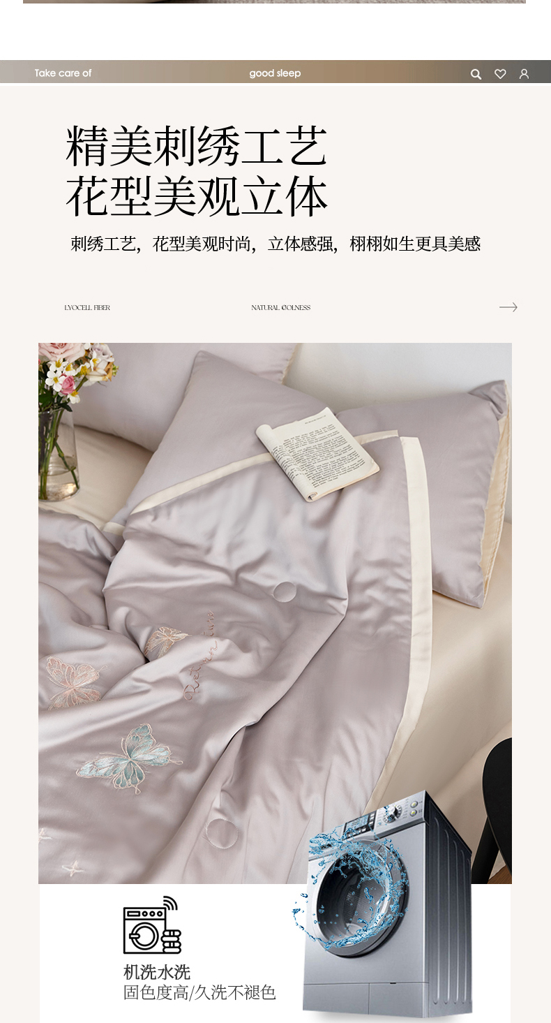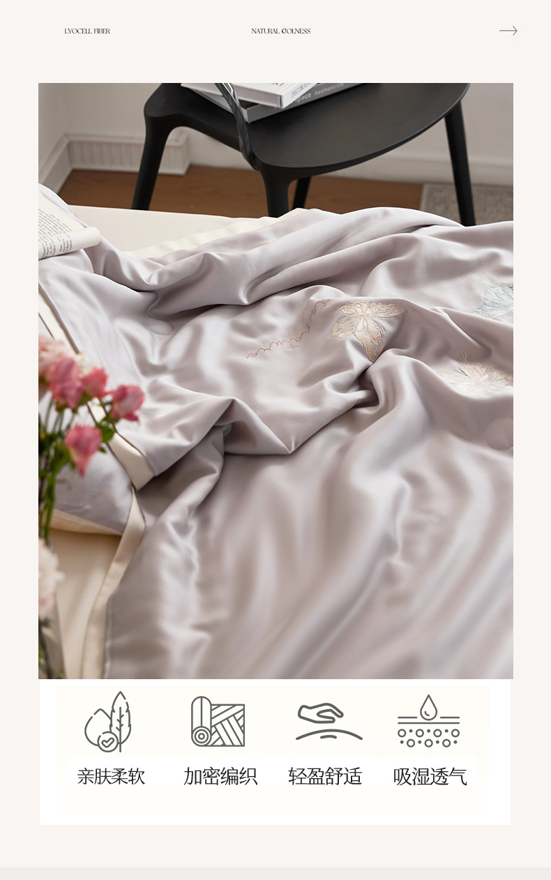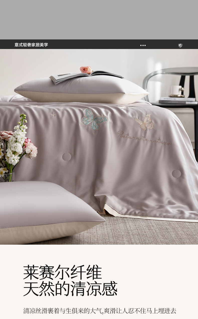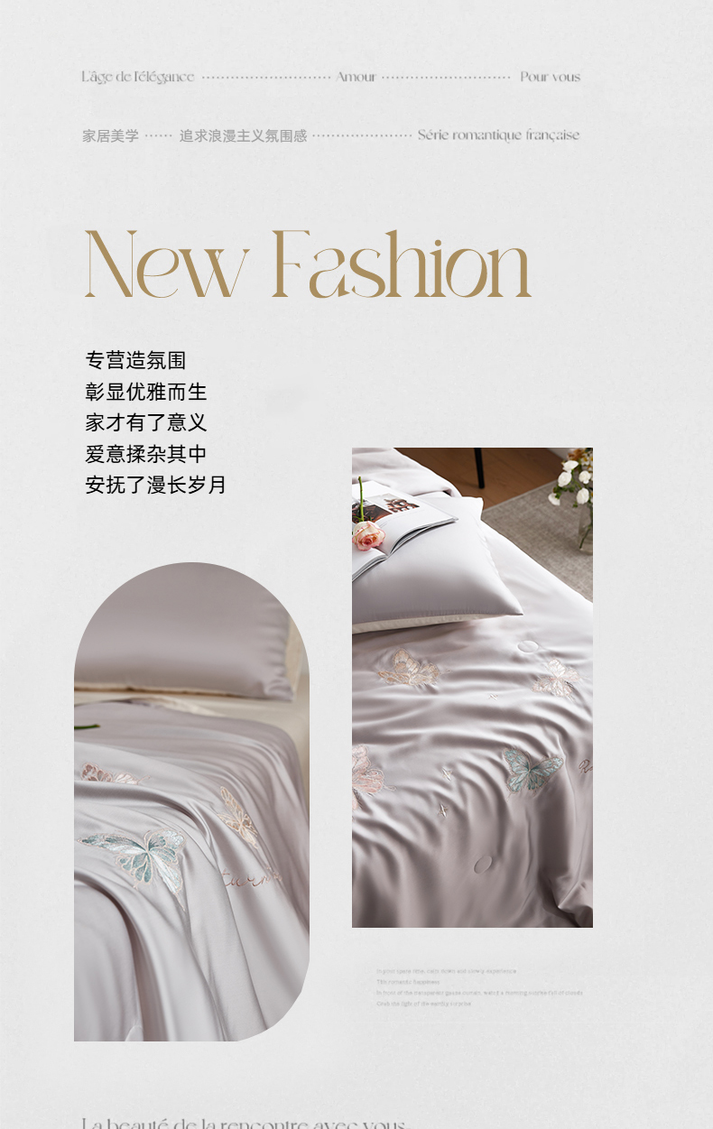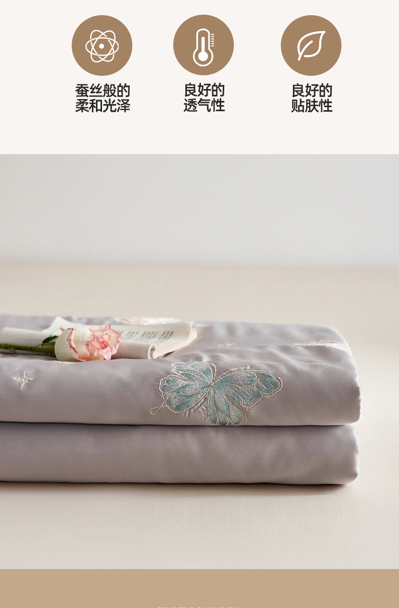 当前位置: 91家纺网 > 商品网购 > 床品套件 > 四件套 > 夏被四件套 > 纪梵茜 2025新款莱赛尔天丝夏被四件套-蝶恋 蝶恋-灰色