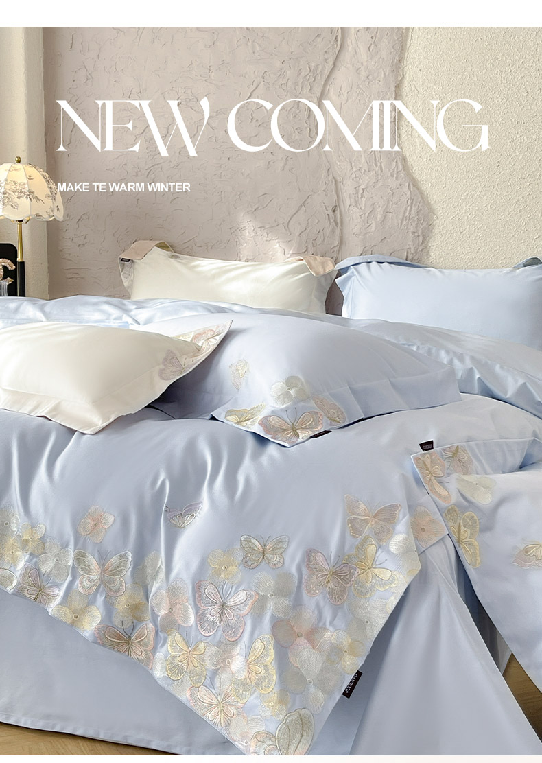 (总)2025新款轻奢风A类100支长绒棉四件套全棉纯棉重工刺绣床单床笠夹棉床笠床盖款高端床上用品-星慕,白粉,白蓝,茶绿,黛紫,慕蓝,奶玉,颜粉