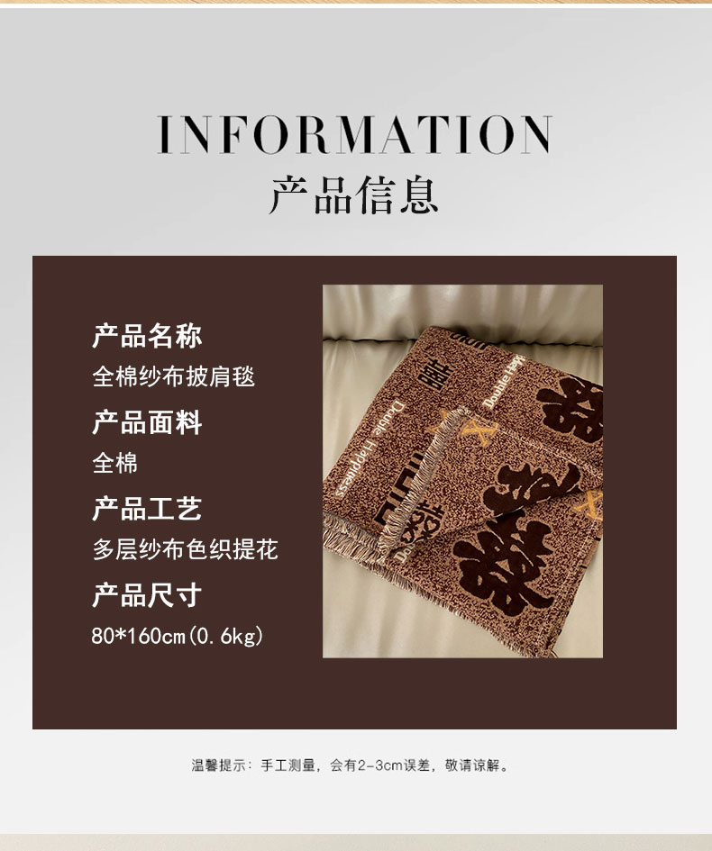 商品名称:麻依 2025新款全棉纱布披肩浴巾旅行毯 千禧
