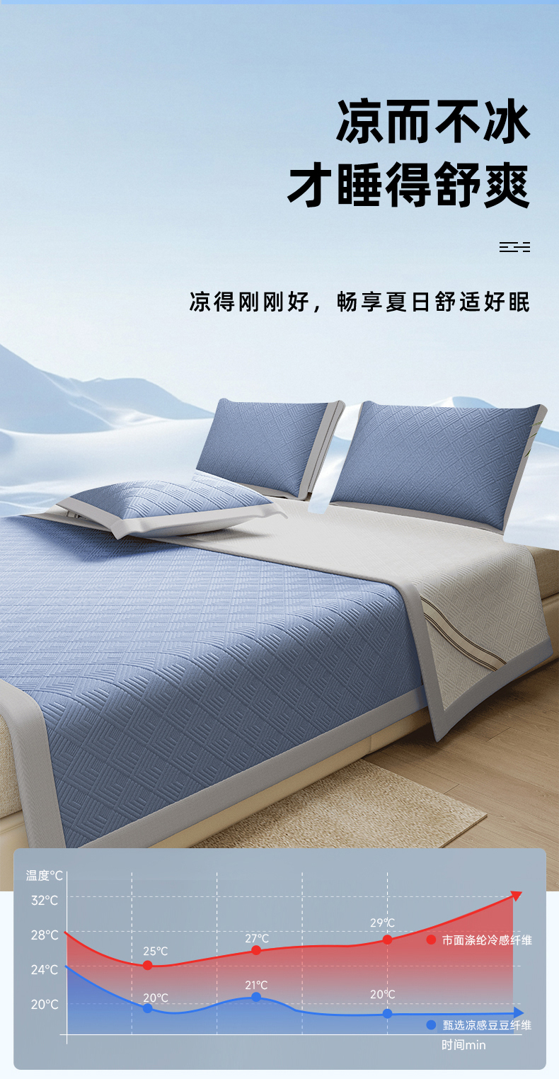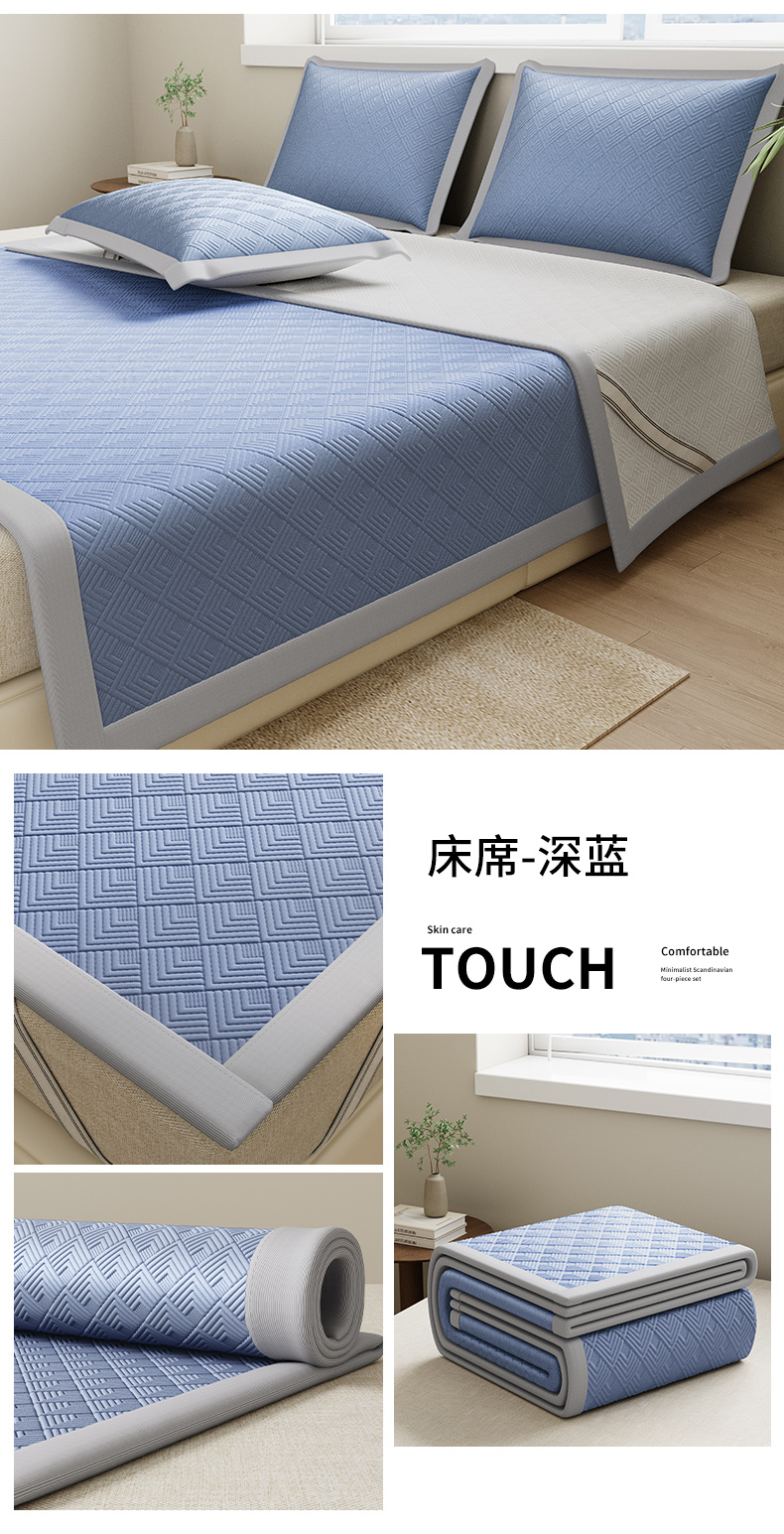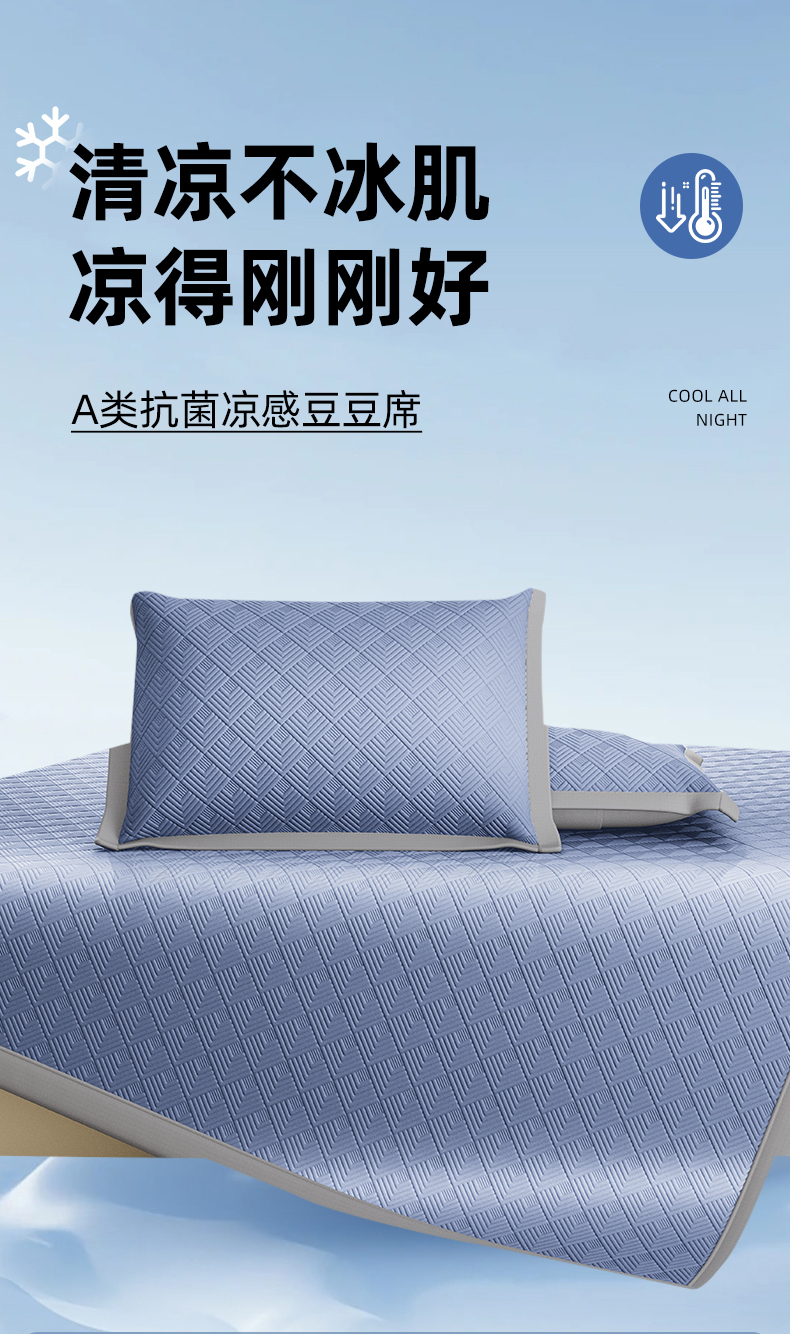鑫姿席业 2025年春夏新款A类抗菌凉感豆豆凉席-软床席 软床席-深蓝