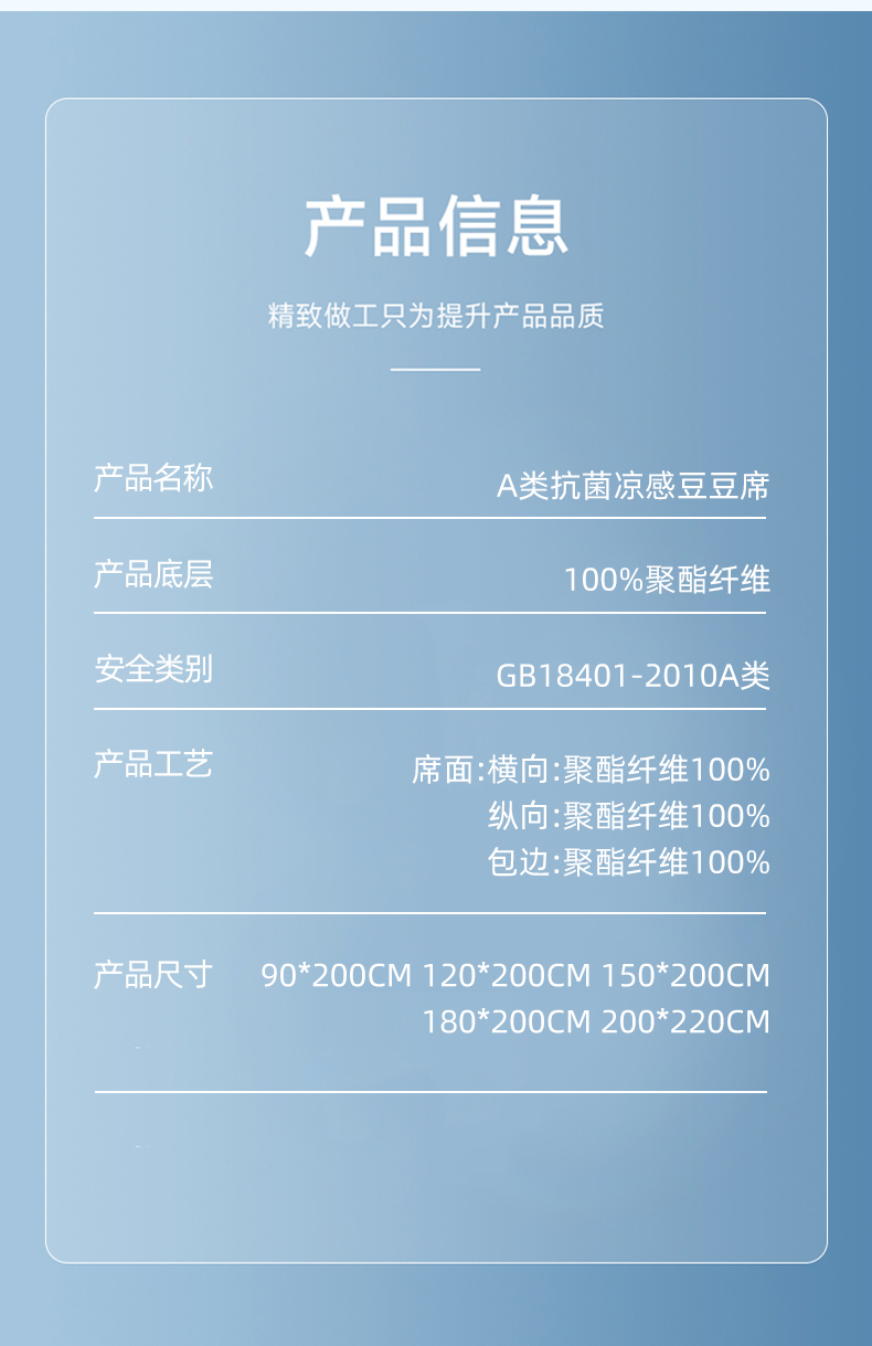 商品名称:鑫姿席业 2025年春夏新款A类抗菌凉感豆豆凉席-软床席 软床席-深蓝
