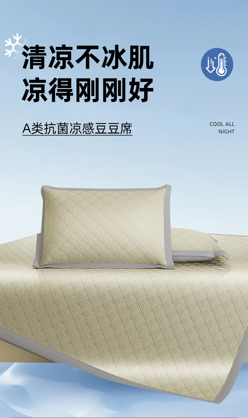 (总)鑫姿席业 2025年春夏新款A类抗菌凉感豆豆凉席-软床席,软床席-粉色,软床席-灰色,软床席-卡其,软床席-浅黄,软床席-深蓝,软床席-水绿,软床席-天蓝色