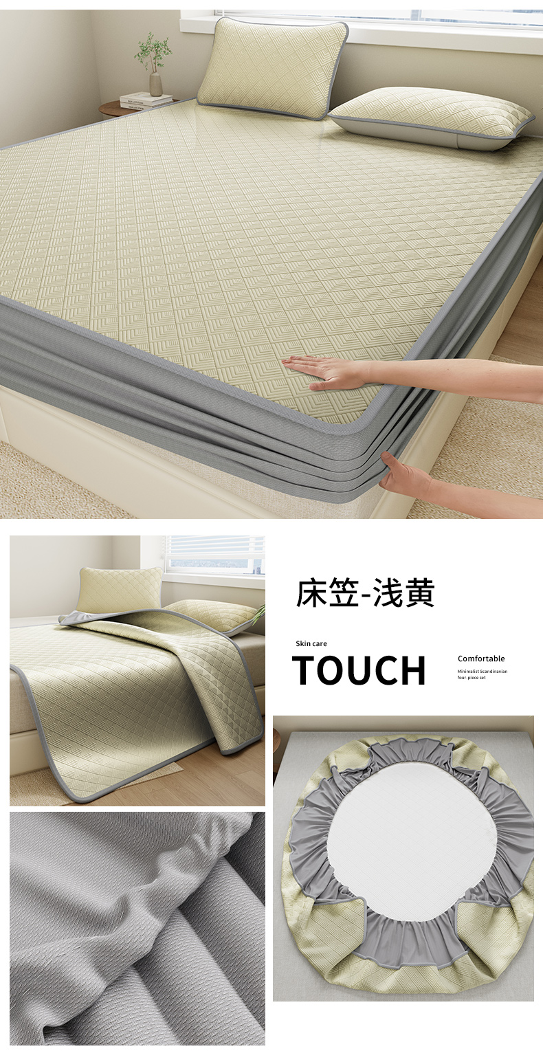 鑫姿席业 2025春夏新款A类抗菌凉感豆豆凉席-软床笠 床笠----浅黄