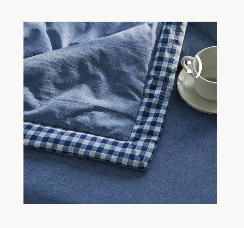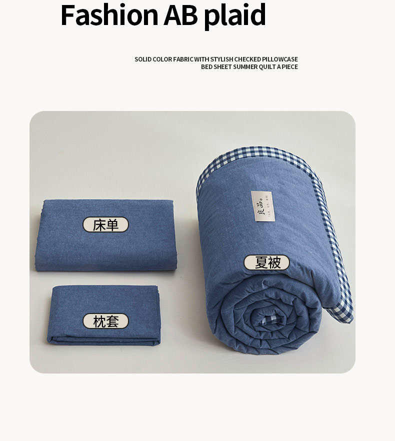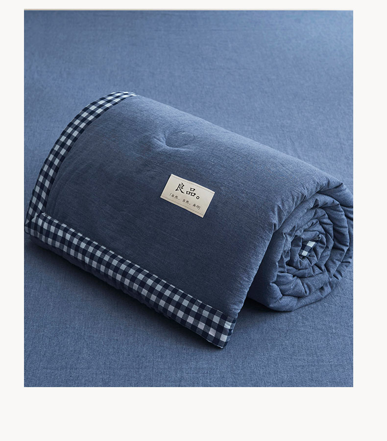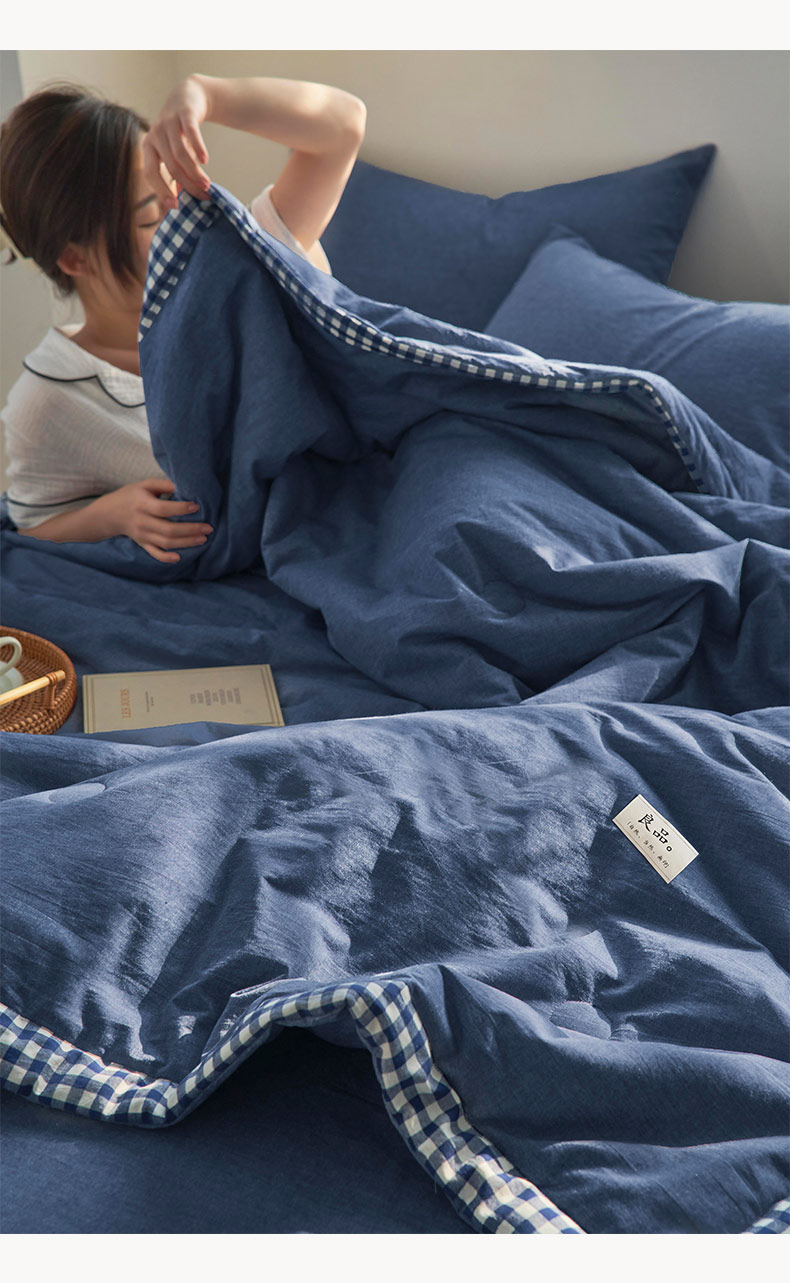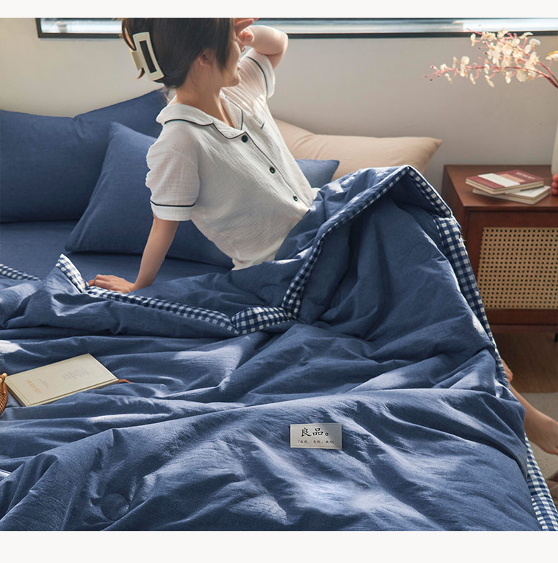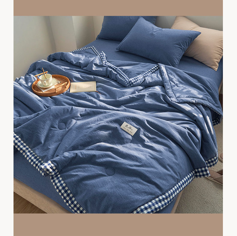 商品名称:子由家居 2025新款水洗棉棋盘格织标大豆纤维夏被被子被芯 棋盘格边夏被-深蓝