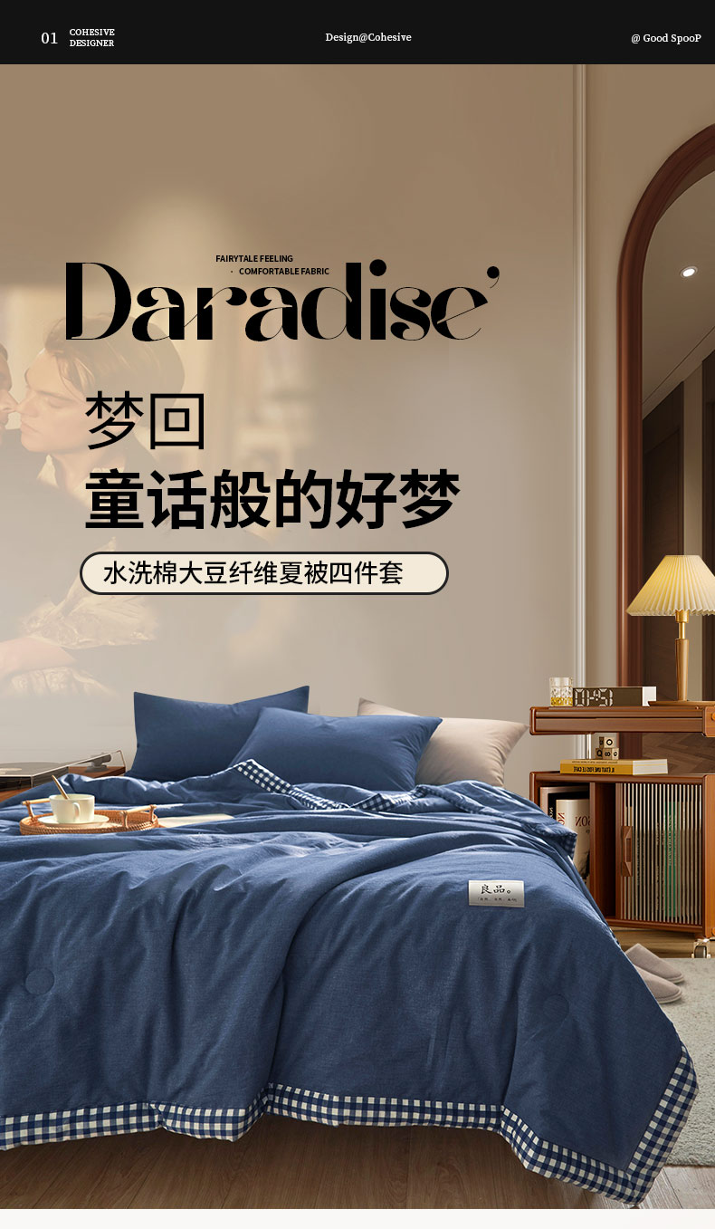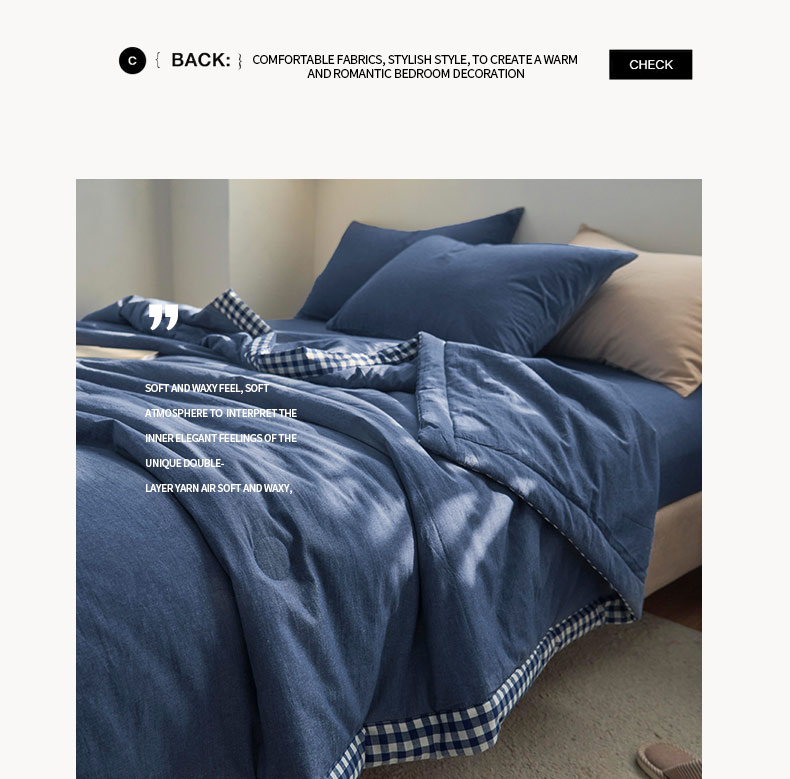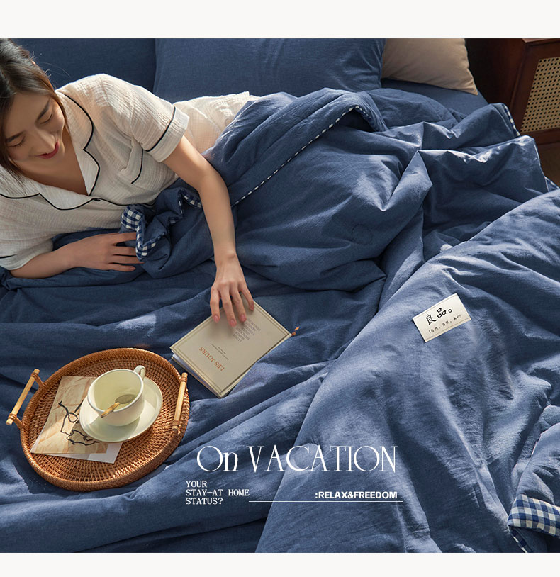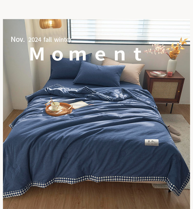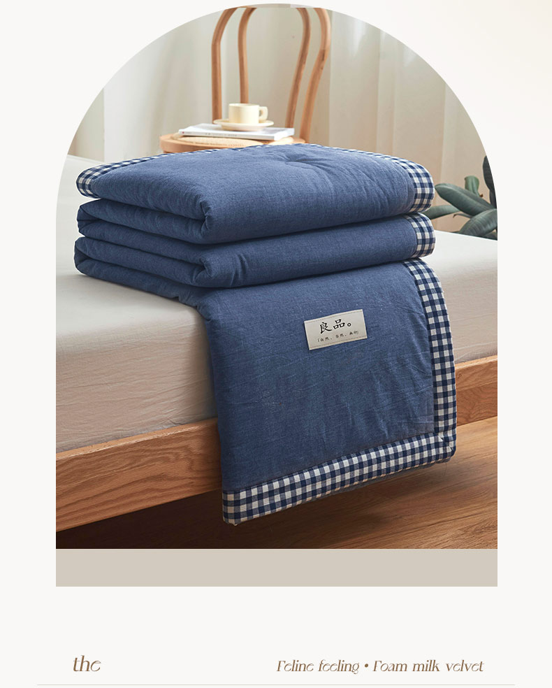 商品名称:子由家居 2025新款水洗棉棋盘格织标大豆纤维夏被被子被芯 棋盘格边夏被-深蓝