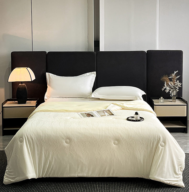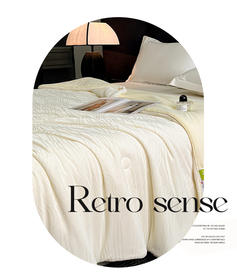 子由家居 2025新款凉感丝浮雕提花大豆夏被被子被芯 曲线纹-米白