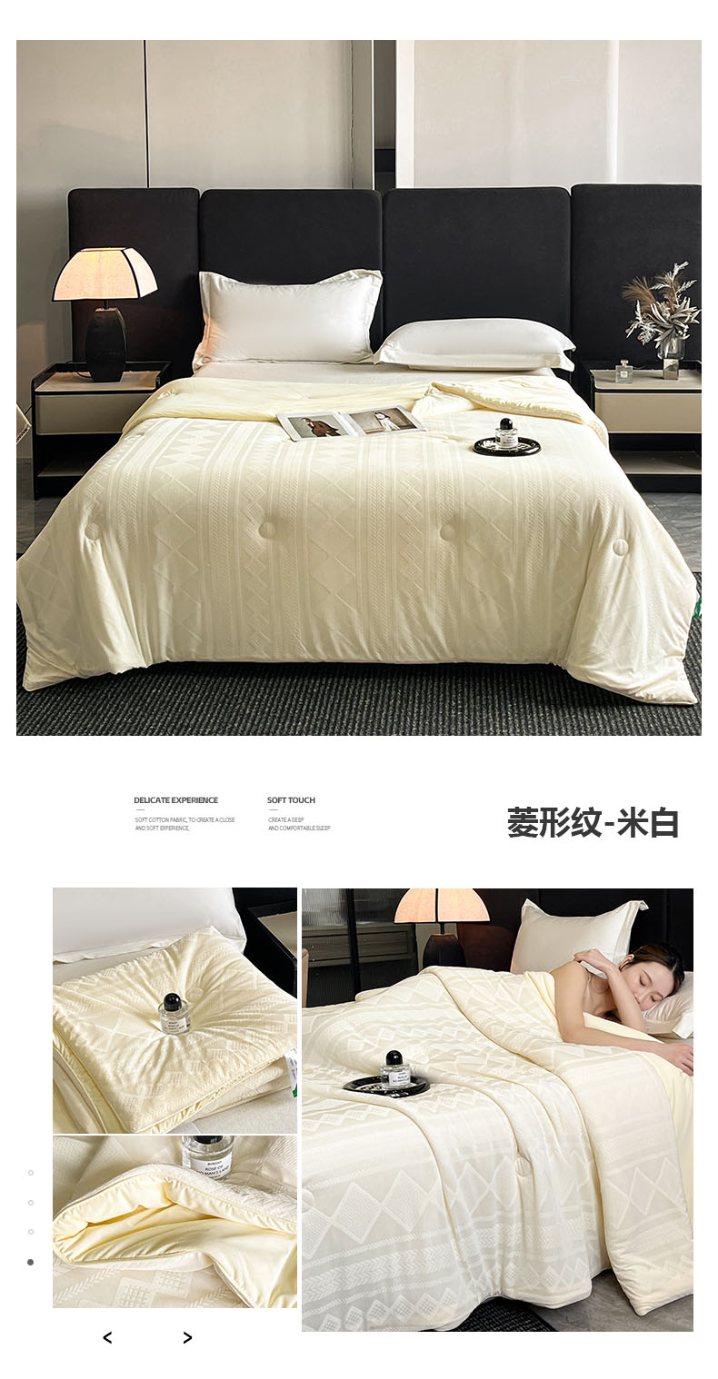 商品名称:子由家居 2025新款凉感丝浮雕提花大豆夏被被子被芯 曲线纹-米白