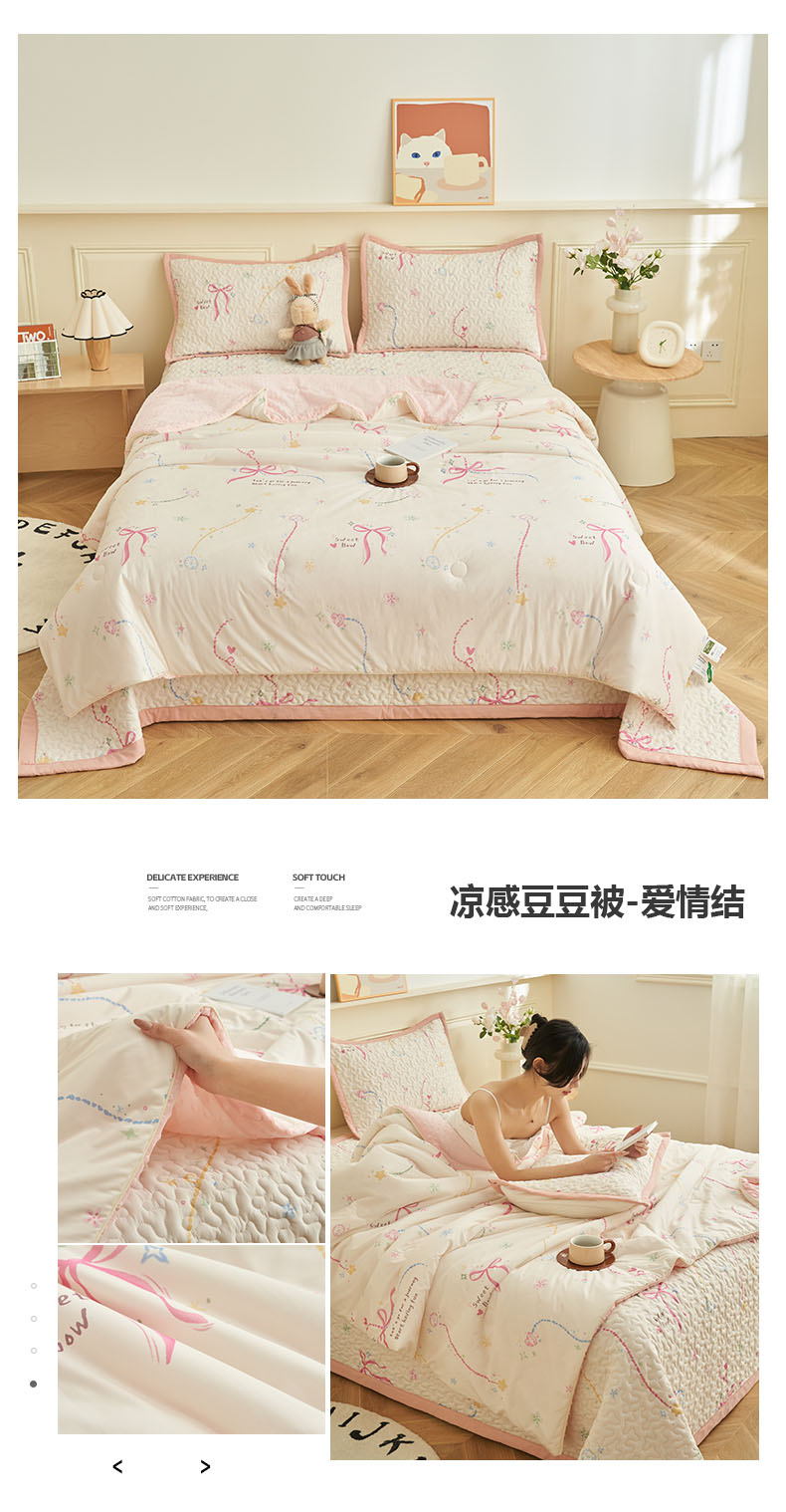 商品名称:子由家居 2025新款凉感丝豆豆夏被四件套 凉感豆豆被-连枝