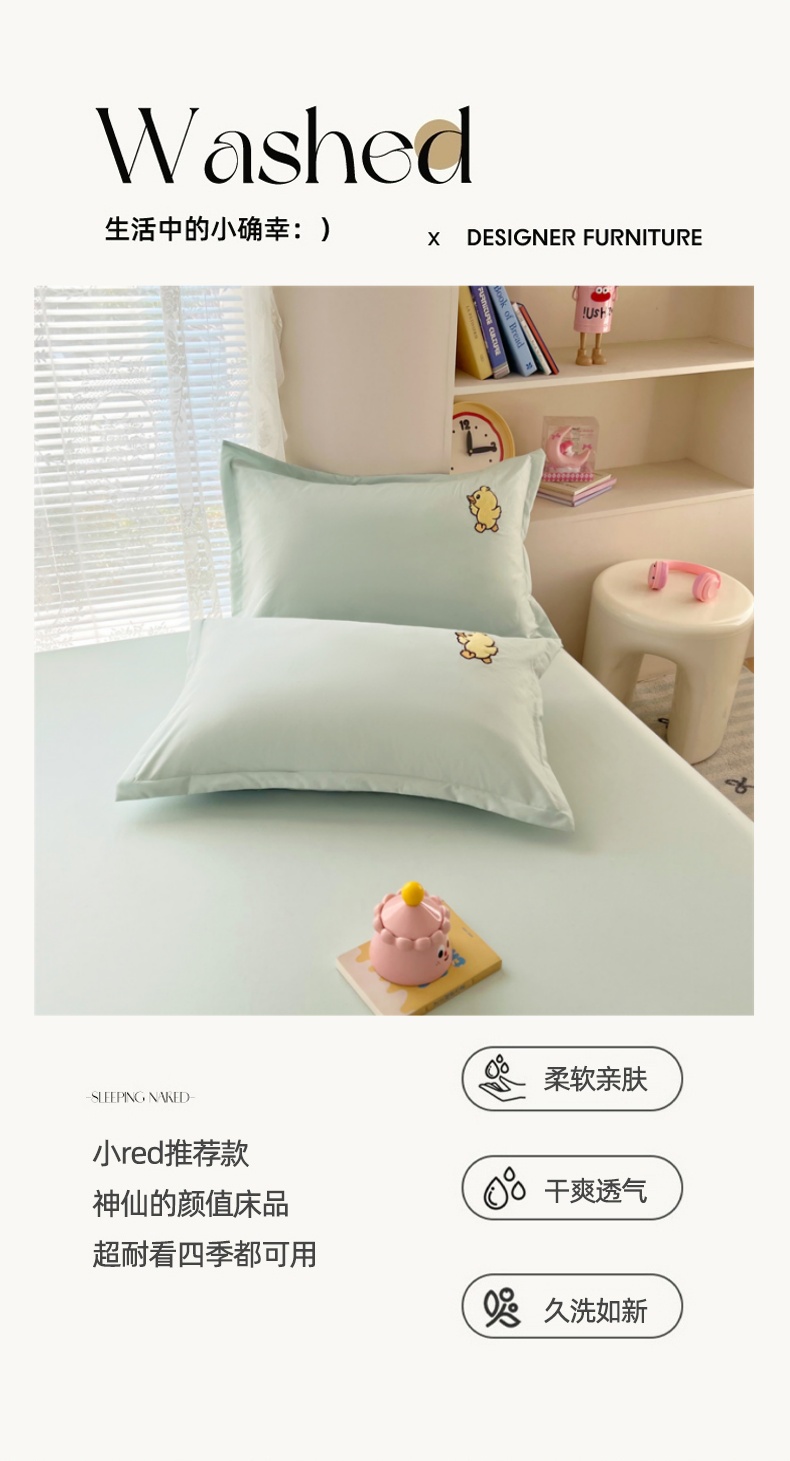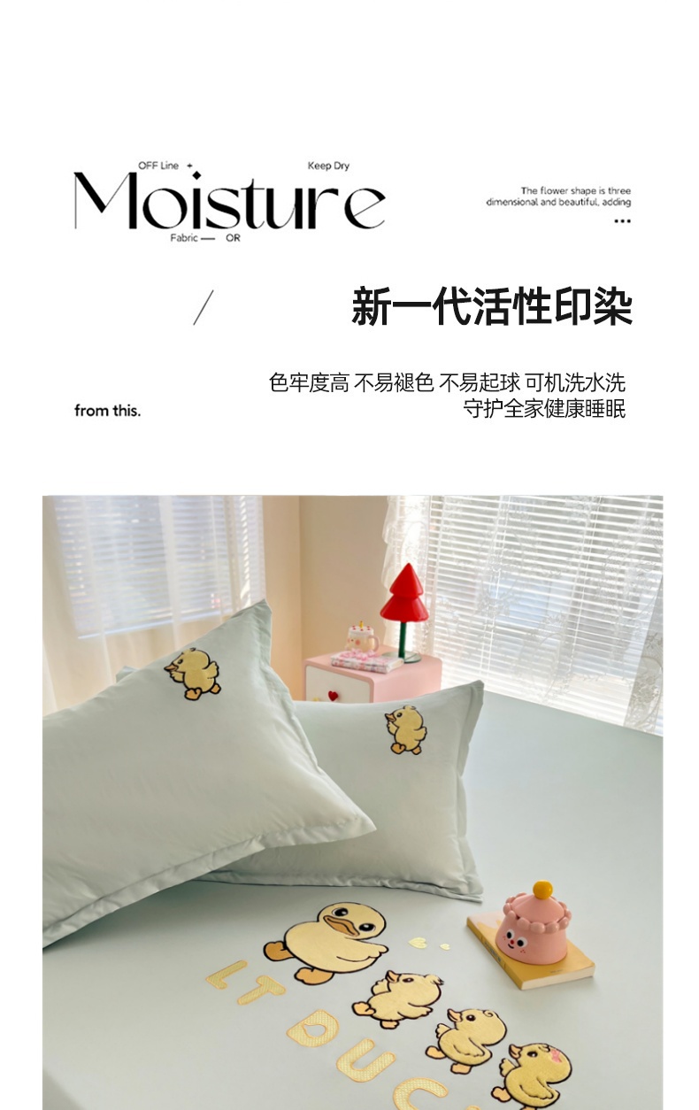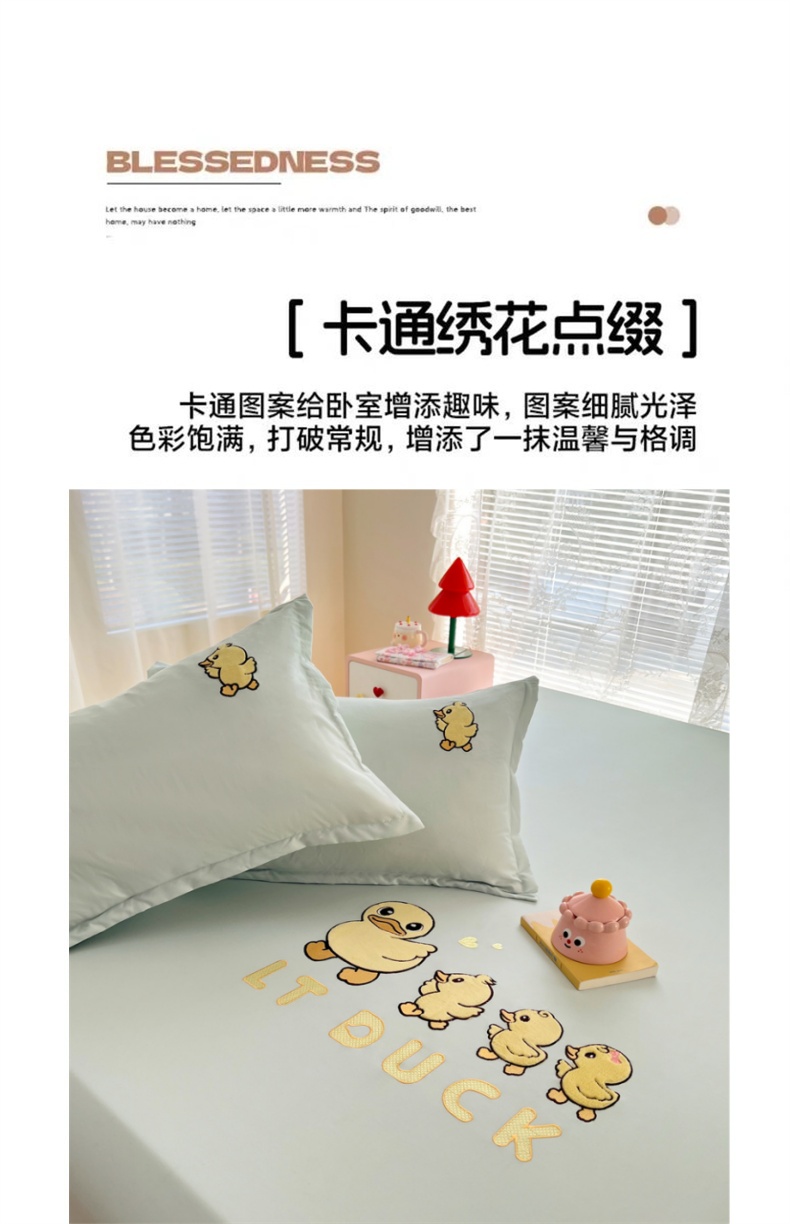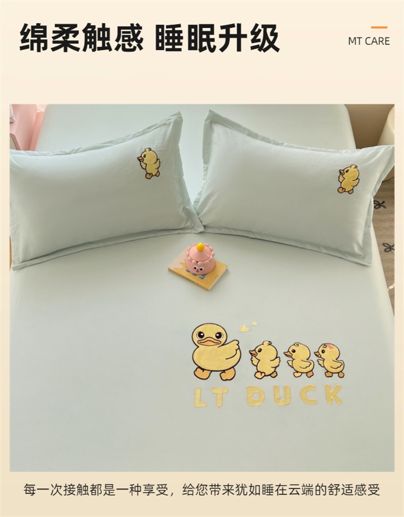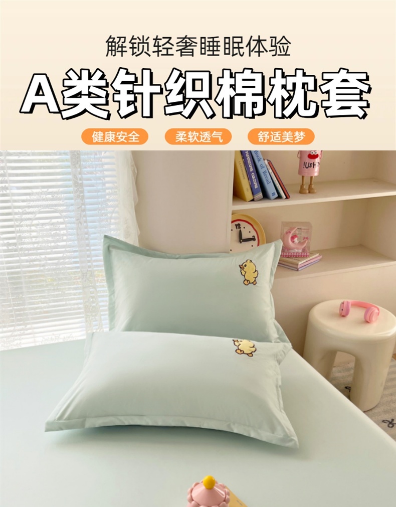 商品名称:梦舒羽 2025新款贴布绣针织棉双层纱枕套 旅行鸭-浅清绿