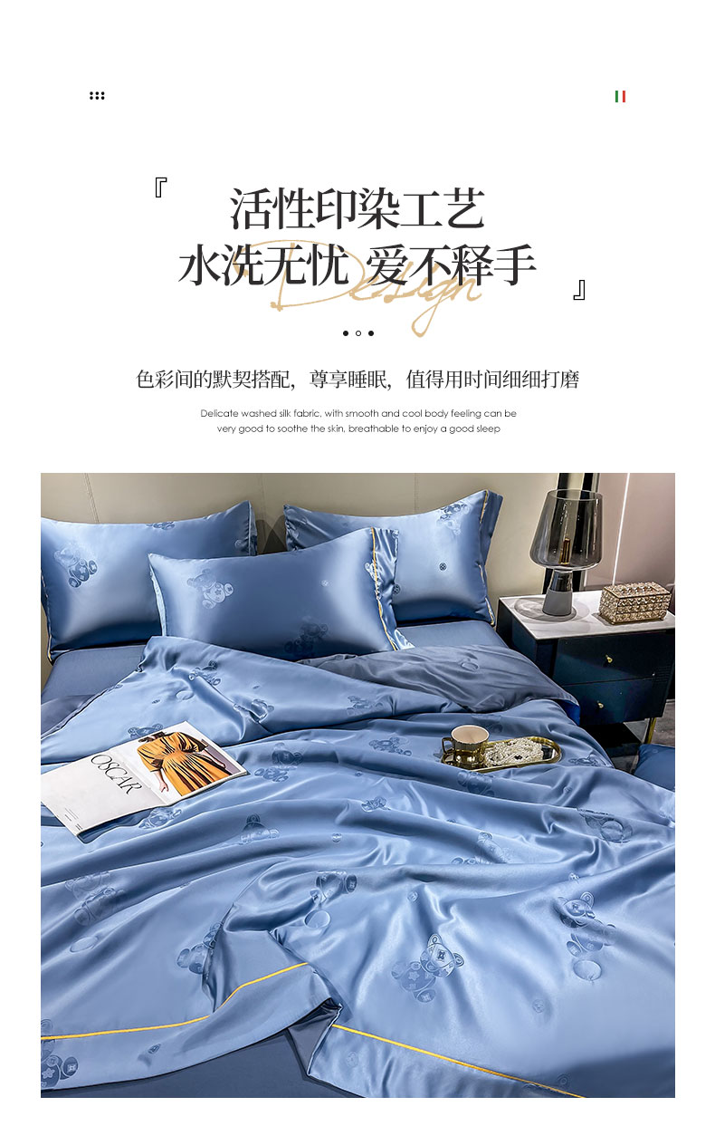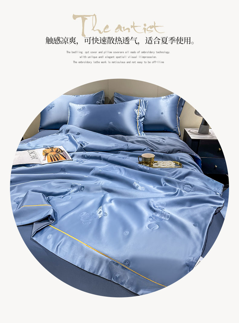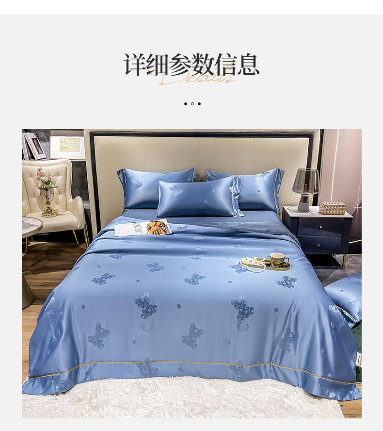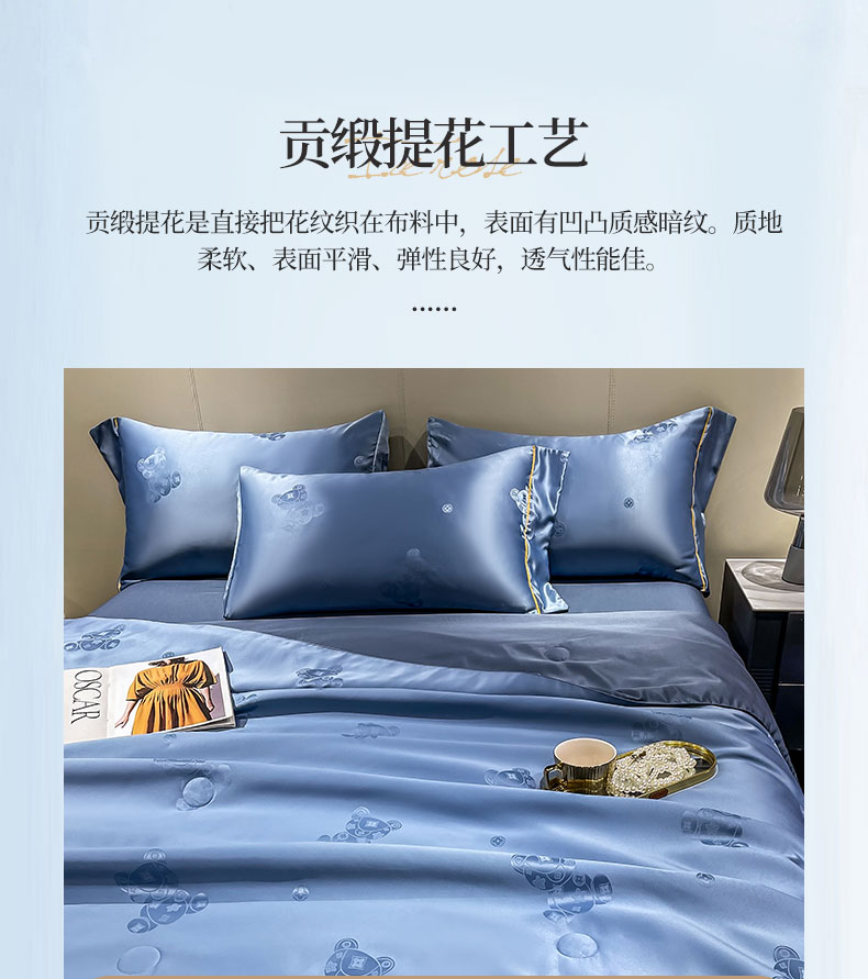 当前位置: 91家纺网 > 商品网购 > 床品套件 > 四件套 > 夏被四件套 > 经年 2025新款潮流熊60S贡缎提花水洗真丝冰丝天丝大豆夏被四件套直播爆款 潮流熊-艳兰