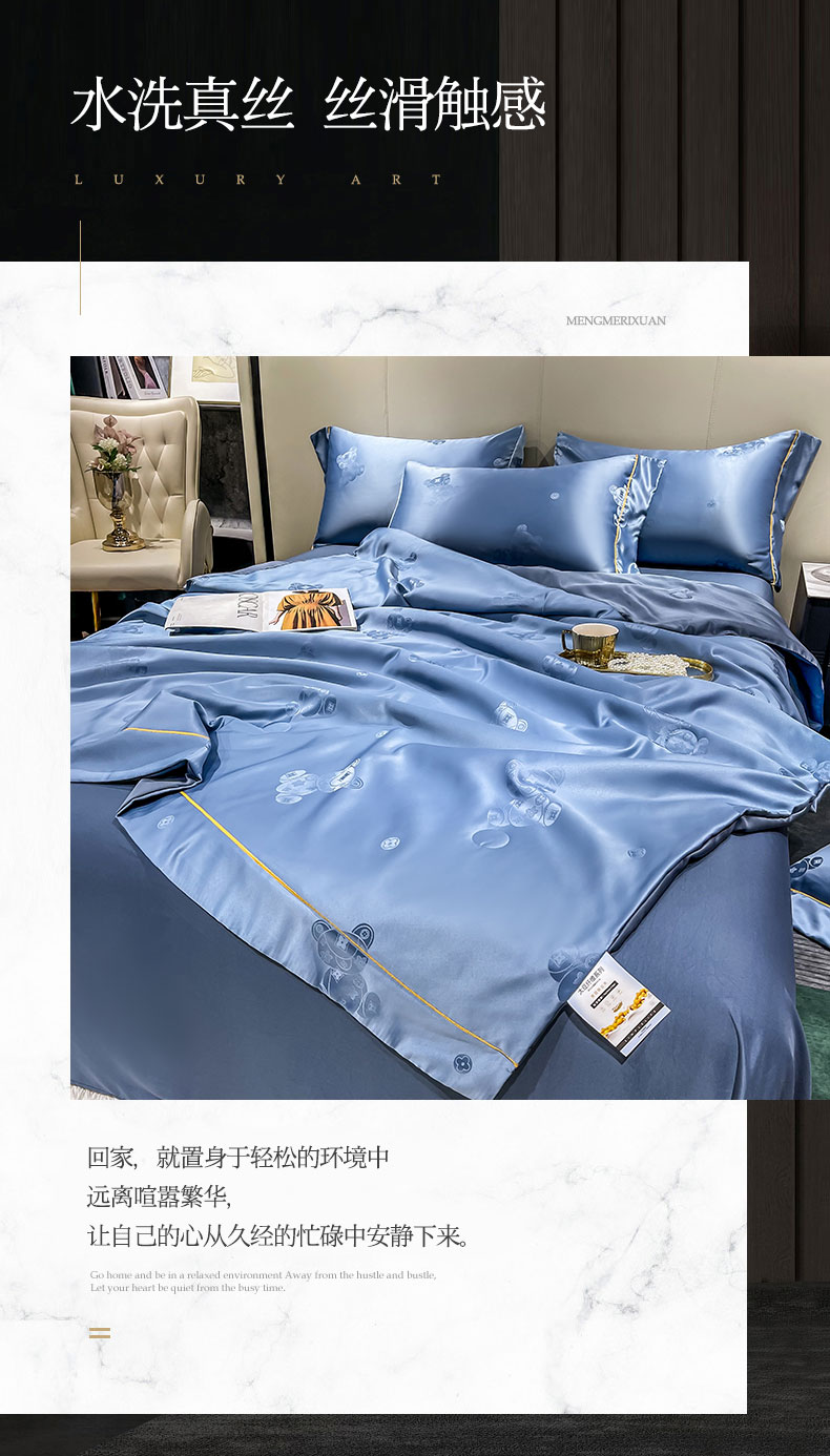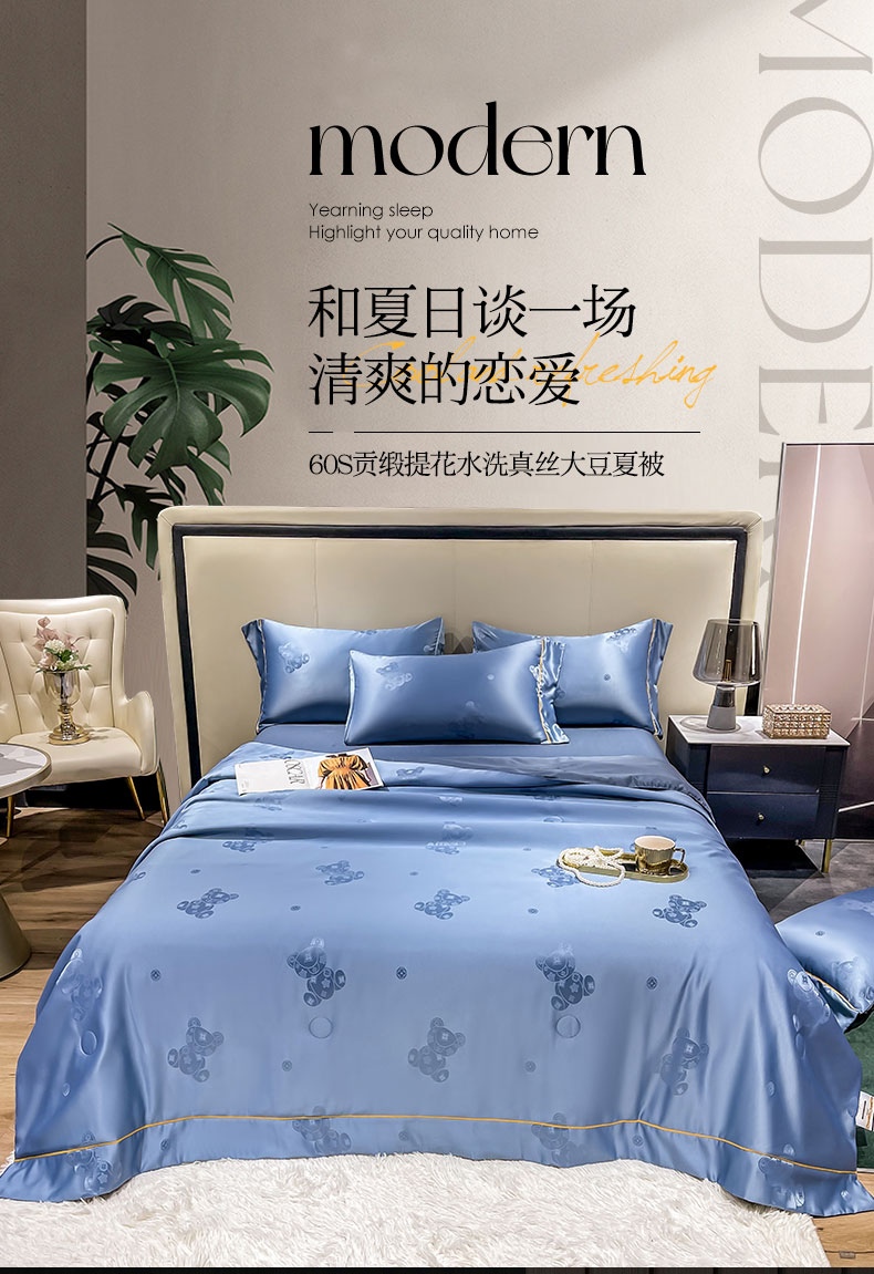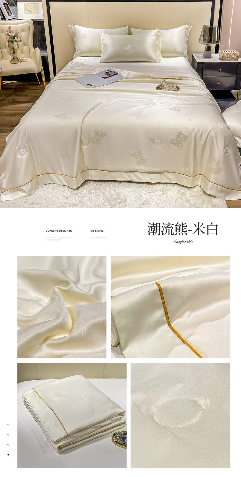 当前位置: 91家纺网 > 商品网购 > 床品套件 > 四件套 > 夏被四件套 > 经年 2025新款潮流熊60S贡缎提花水洗真丝冰丝天丝大豆夏被四件套直播爆款 潮流熊-艳兰