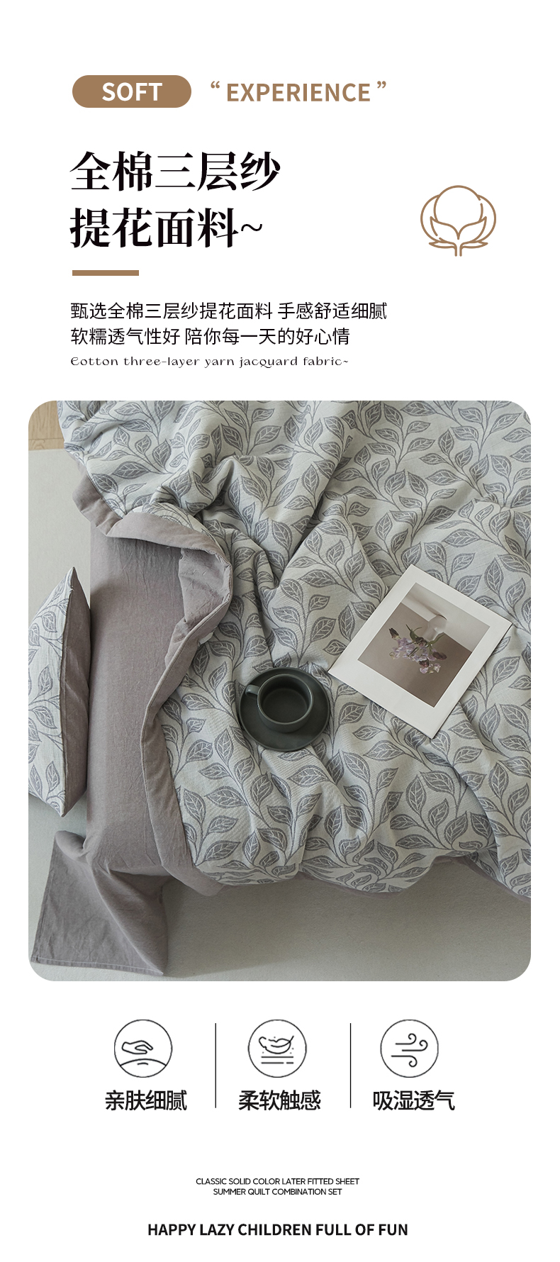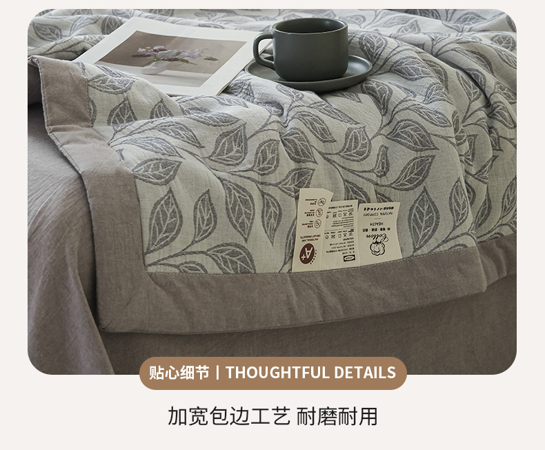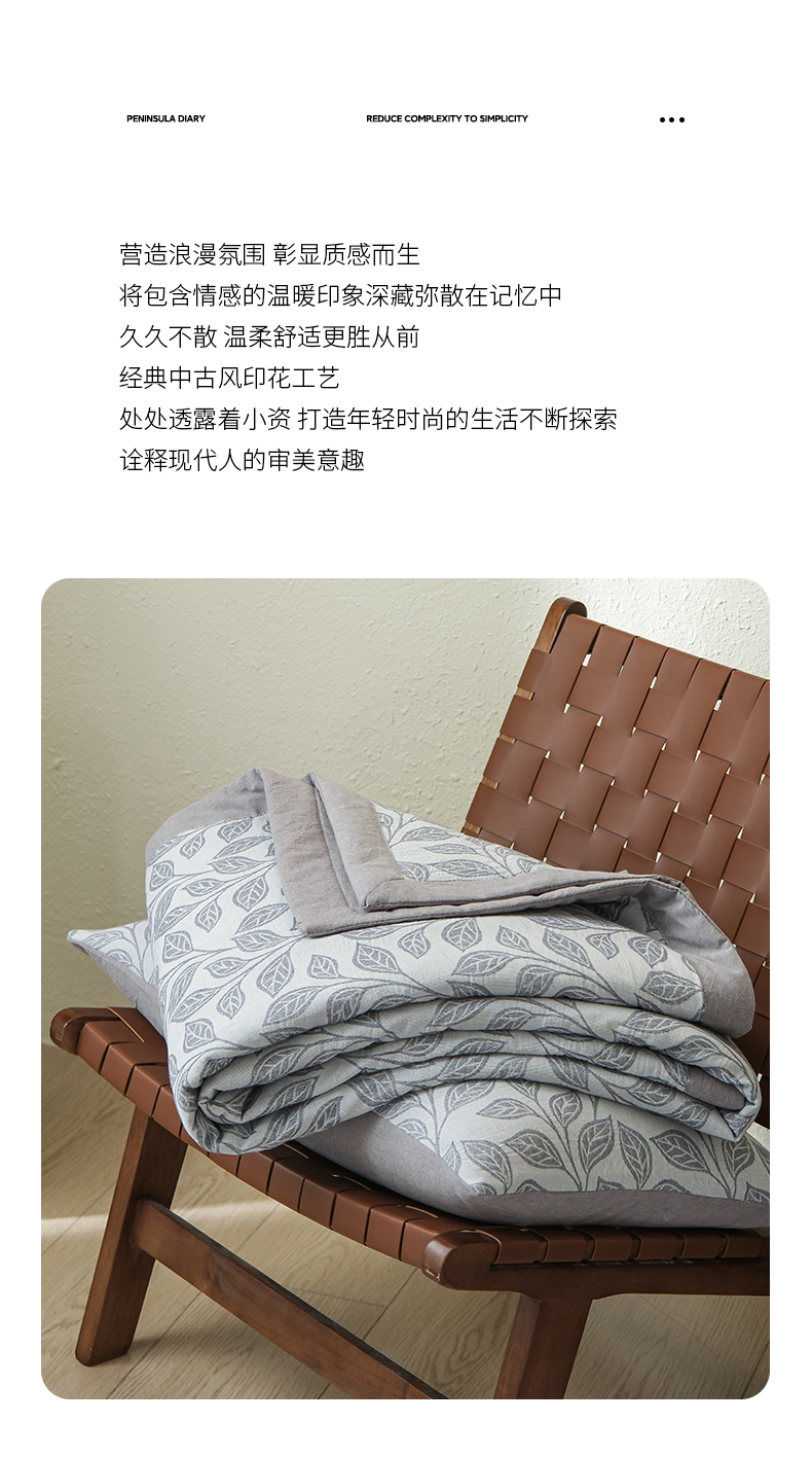 • 91家纺网 家纺一手货源 找家纺 优被业 2025新款A类全棉中古风全棉三层纱提花大豆夏被 锦堂-灰蓝