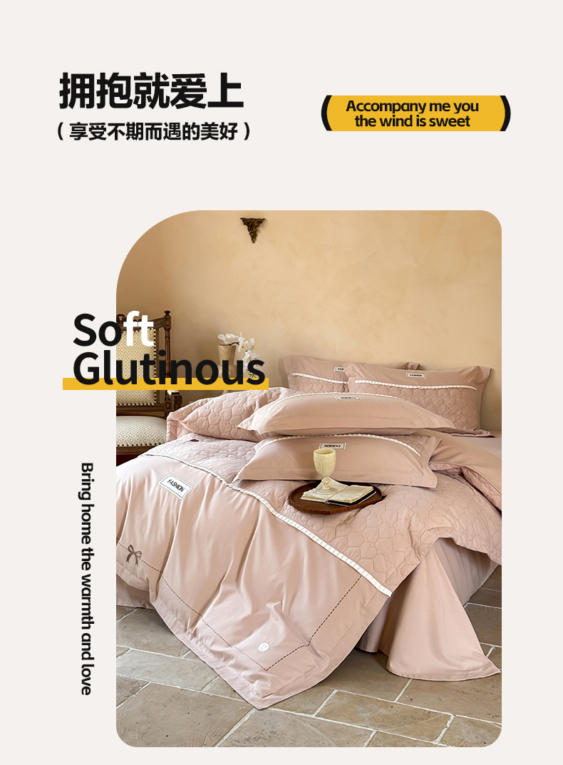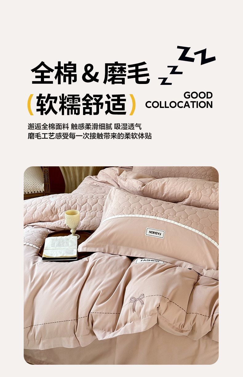 (总)红番天家居馆 (控价)2025新款全棉云柔棉磨毛+磨毛肌理纹+工艺款四件套-珠光(每款供货价的基础上一切活动券后+100),珠光 初秋,珠光 素采,珠光-盈盈