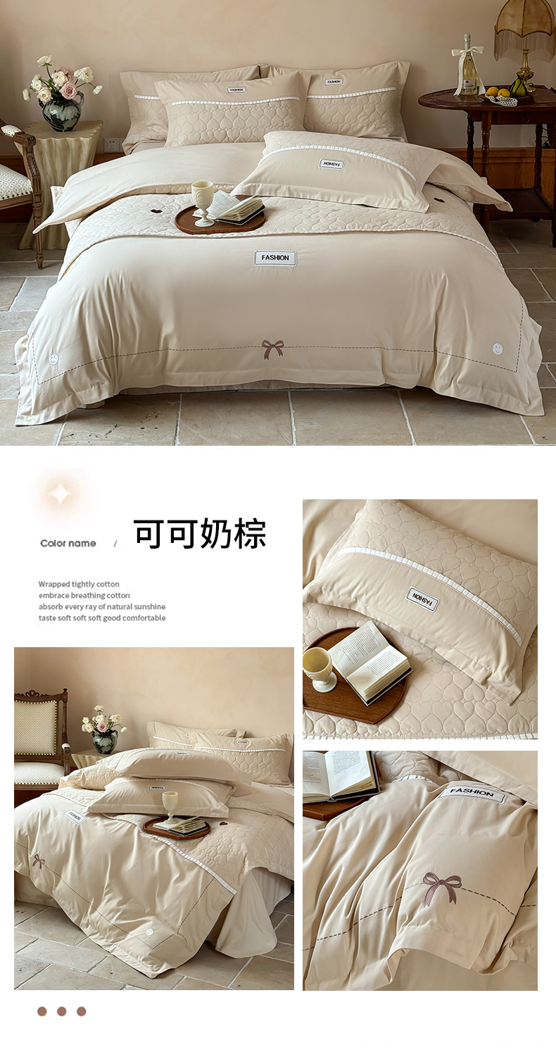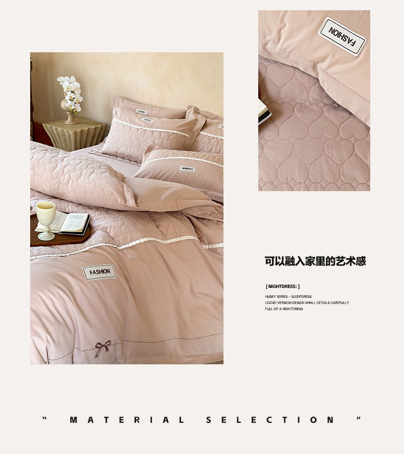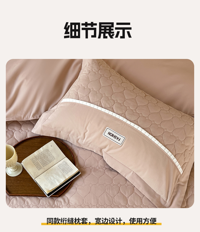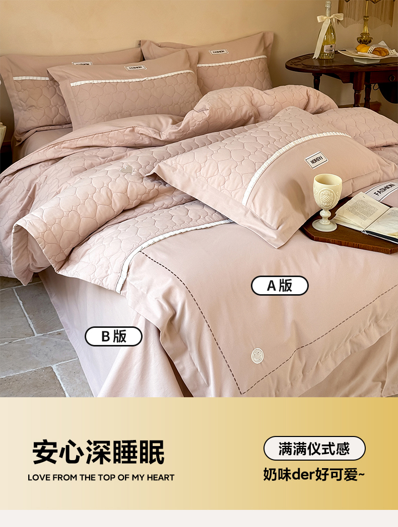 商品名称:红番天家居馆 2025新款浪漫桃心-全棉绗缝磨毛四件套 奶咖