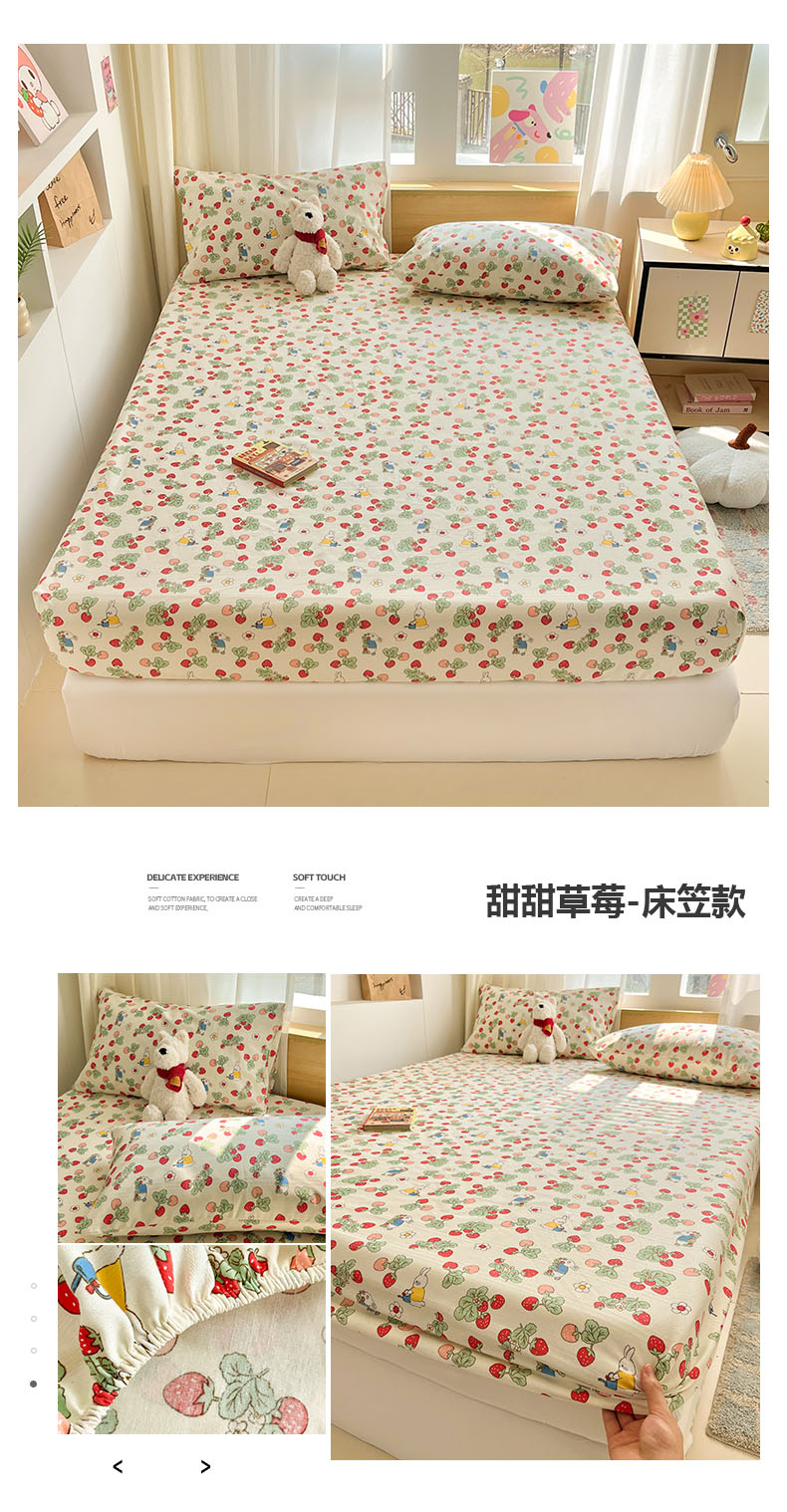 商品名称:新印象 2025春夏新款三枚锻卡老粗布单床笠凉席席子床笠单件 甜甜草莓