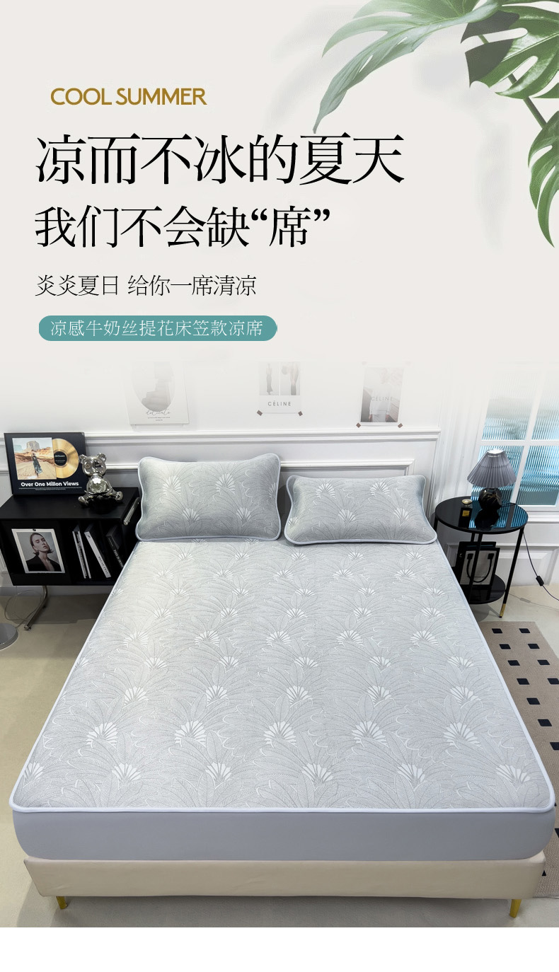 2025新款牛奶丝提花凉感凉席系列床笠款 清风雅韵灰床笠款