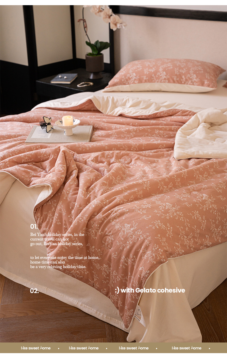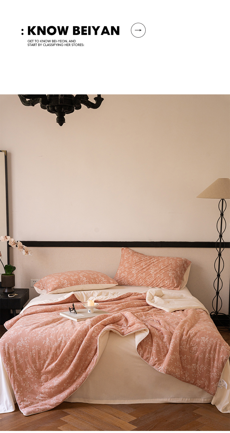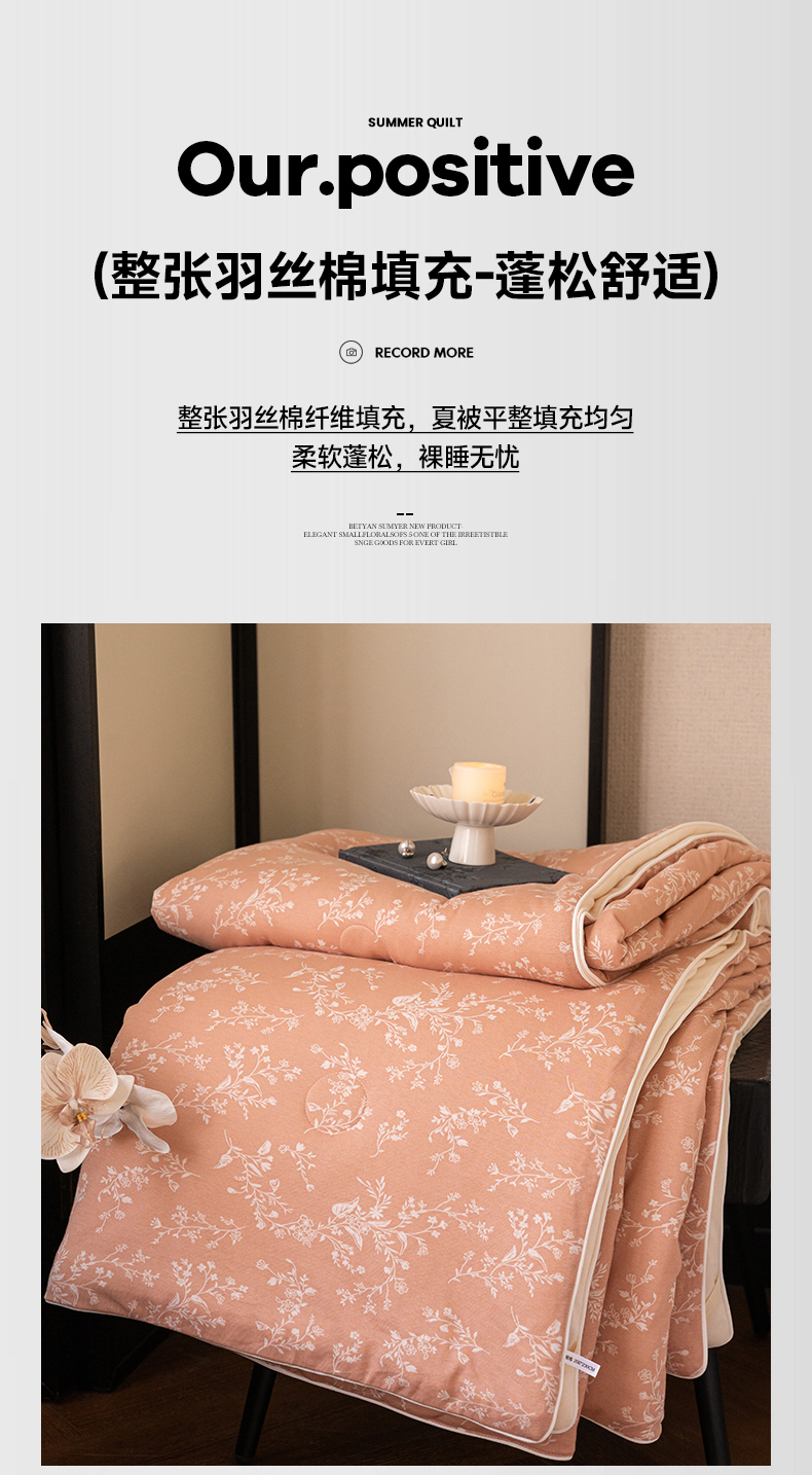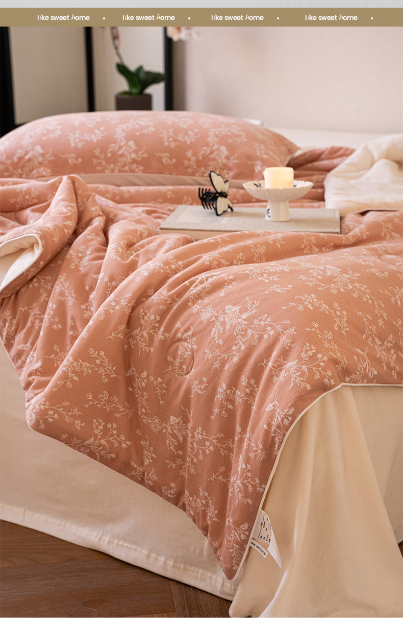 • 91家纺网 家纺一手货源 找家纺 华超针织 2025新款全棉针织印花夏被 半亩花田粉