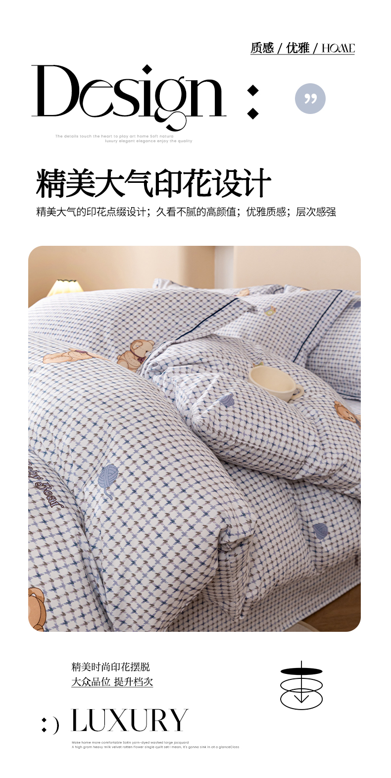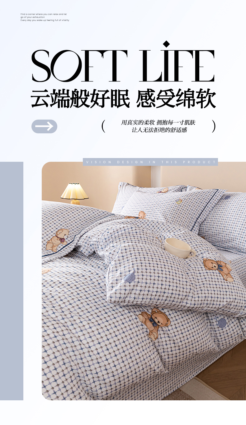 • 91家纺网 家纺一手货源 找家纺 锦罗绣 2025新款全棉13376印花套件单品单被套 小熊