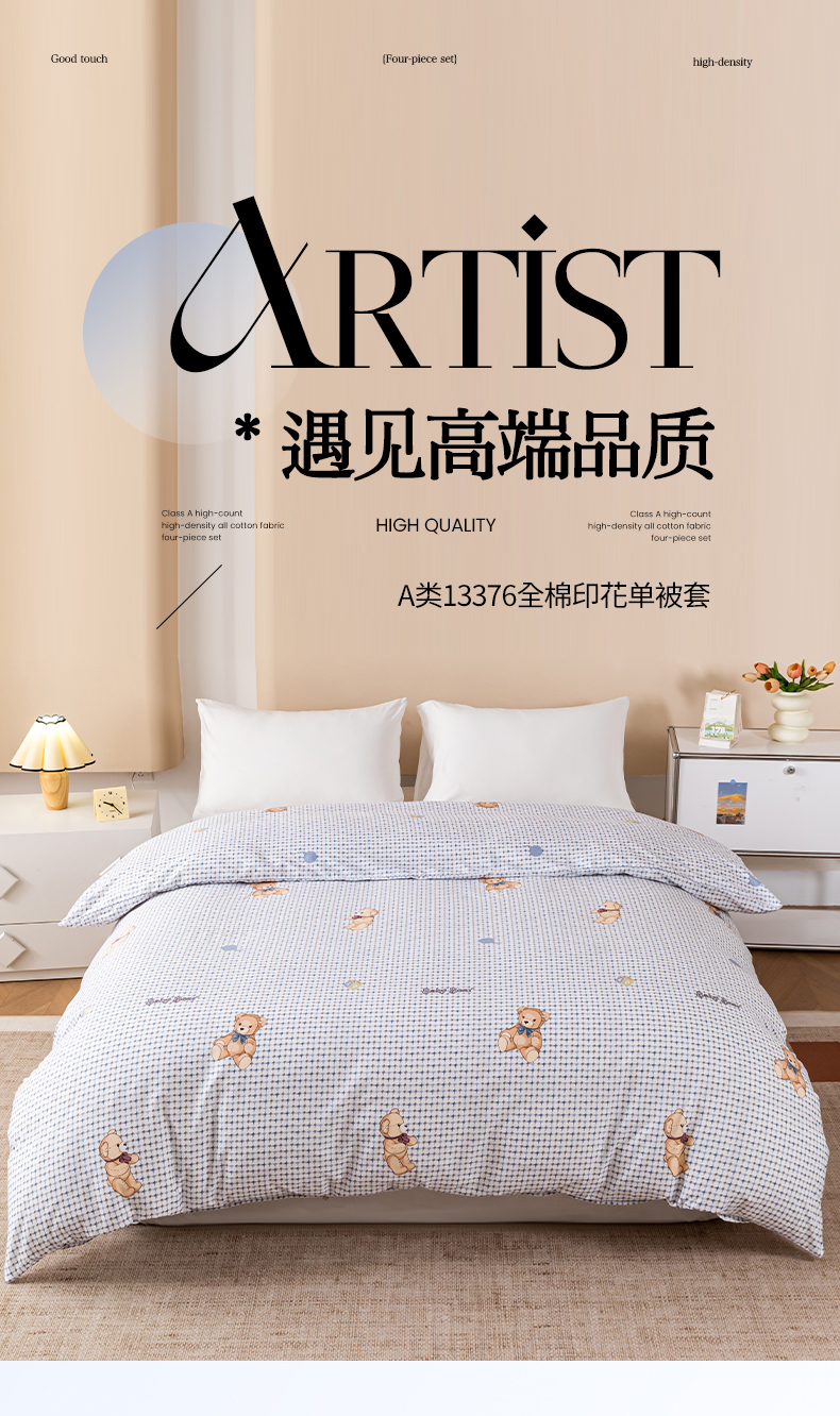锦罗绣 2025新款全棉13376印花套件单品单被套 小熊