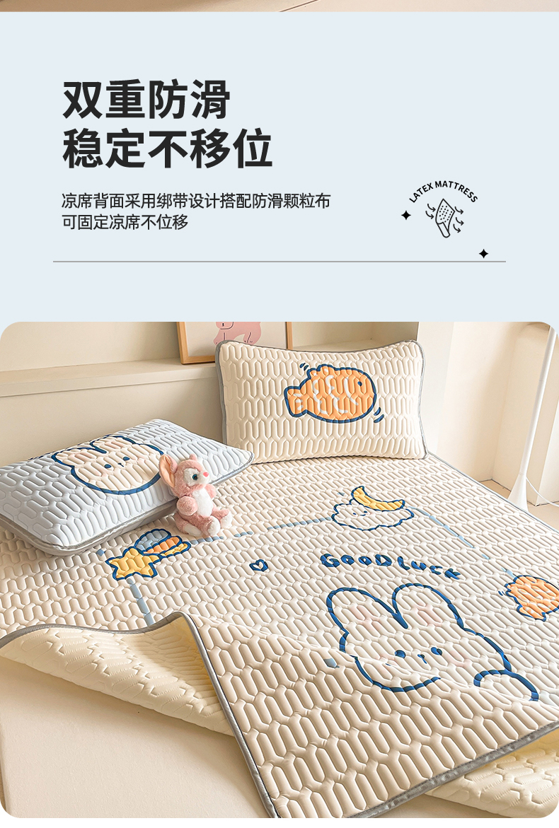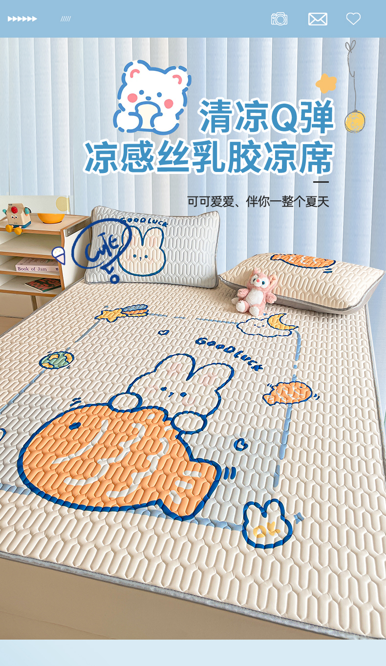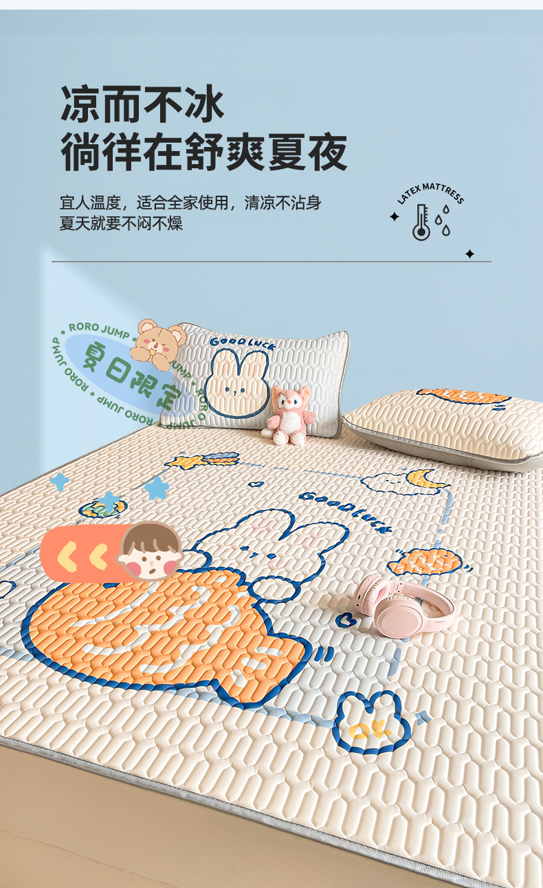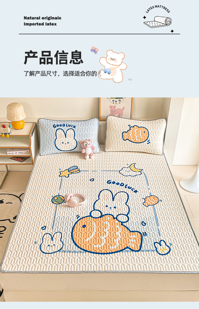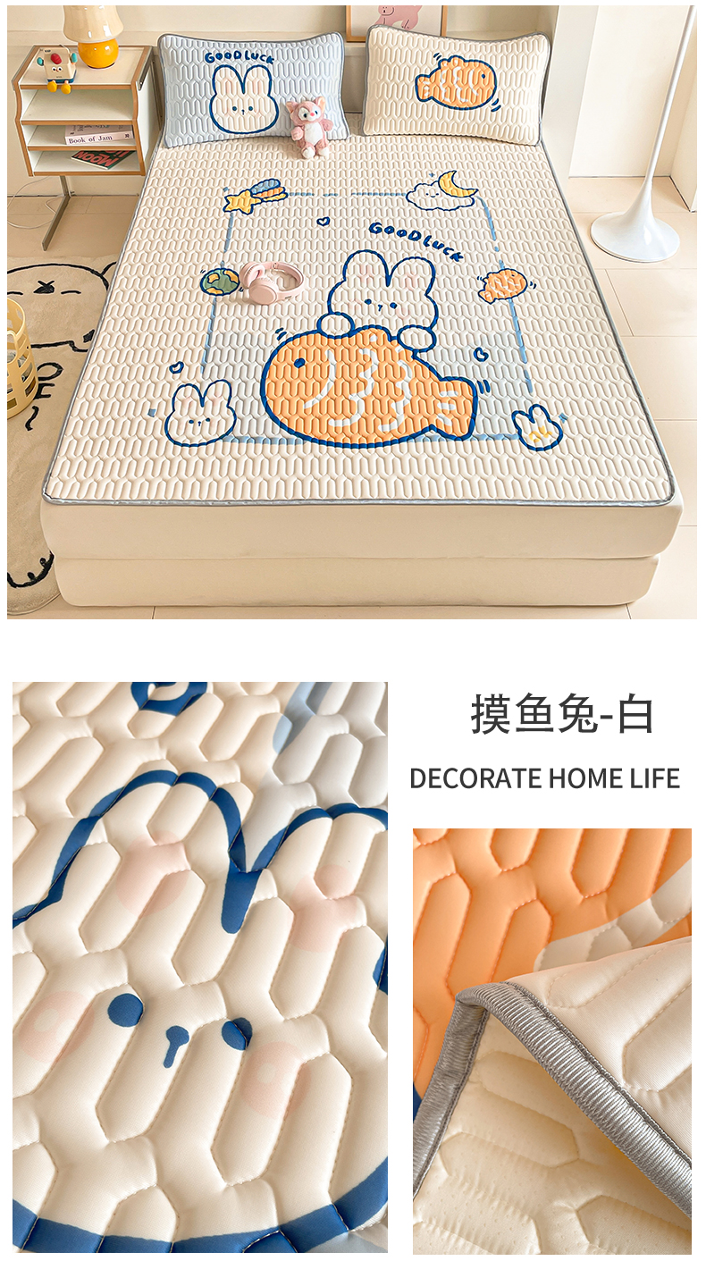 商品名称:布卢姆床垫 2025新款A类大版数码凉感丝乳胶凉席 摸鱼兔-白