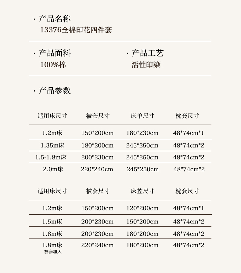 1.8床单款四件套被套200*230 床单245*250 枕套1对 | ¥135.00 |