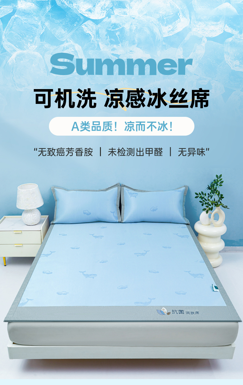 当前位置: 91家纺网 > 商品网购 > 床上用品 > 凉席 > 冰丝席 > 玖明家纺 2025新款精品凉席净味抗菌凉感冰丝席 鲸鱼-兰