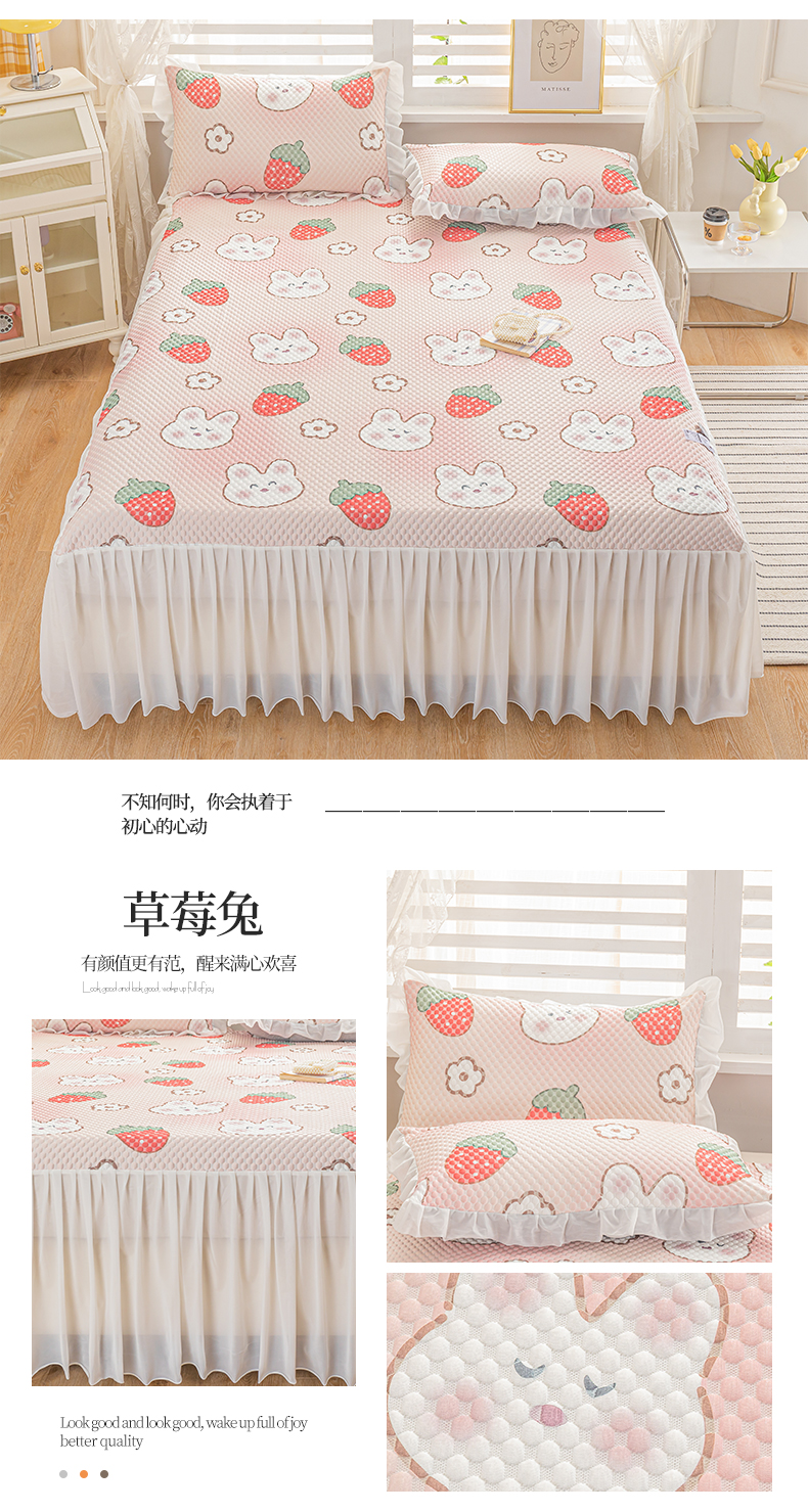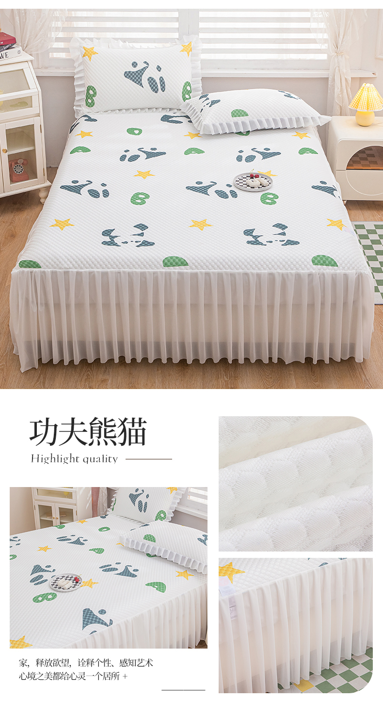 2025新款A类冰豆豆床裙款印花凉席 比心熊