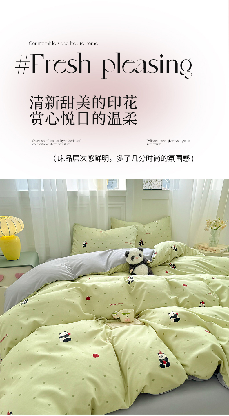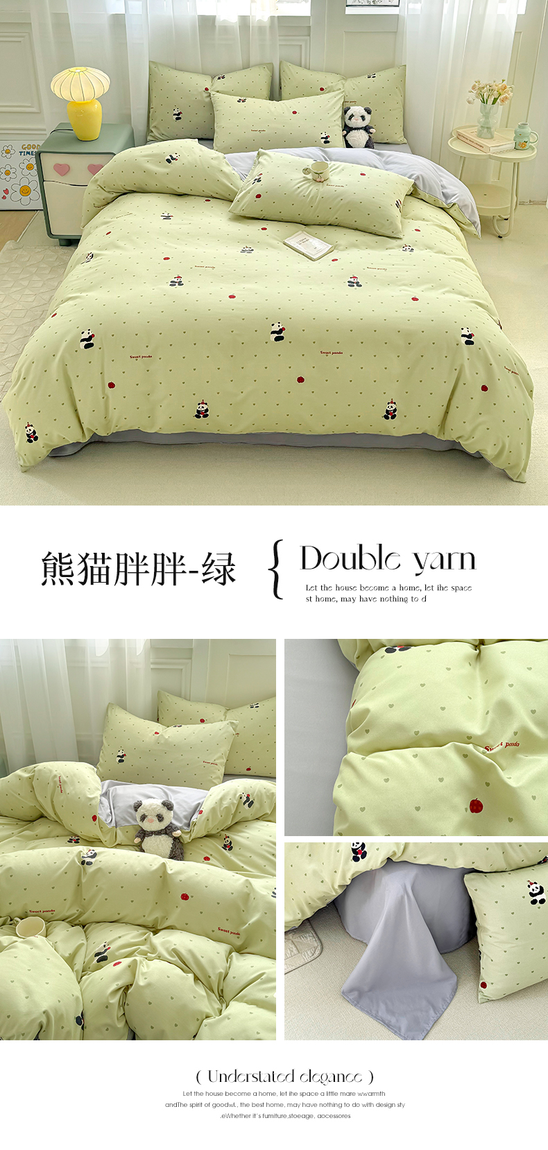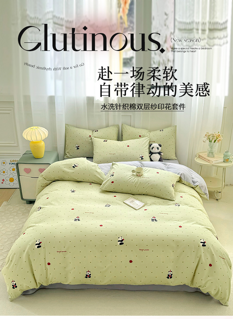 当前位置: 91家纺网 > 商品网购 > 床品套件 > 四件套 > 针织棉四件套 > 丝芙妮家居2025新款水洗针织棉双层纱印花四件套 熊猫胖胖-绿