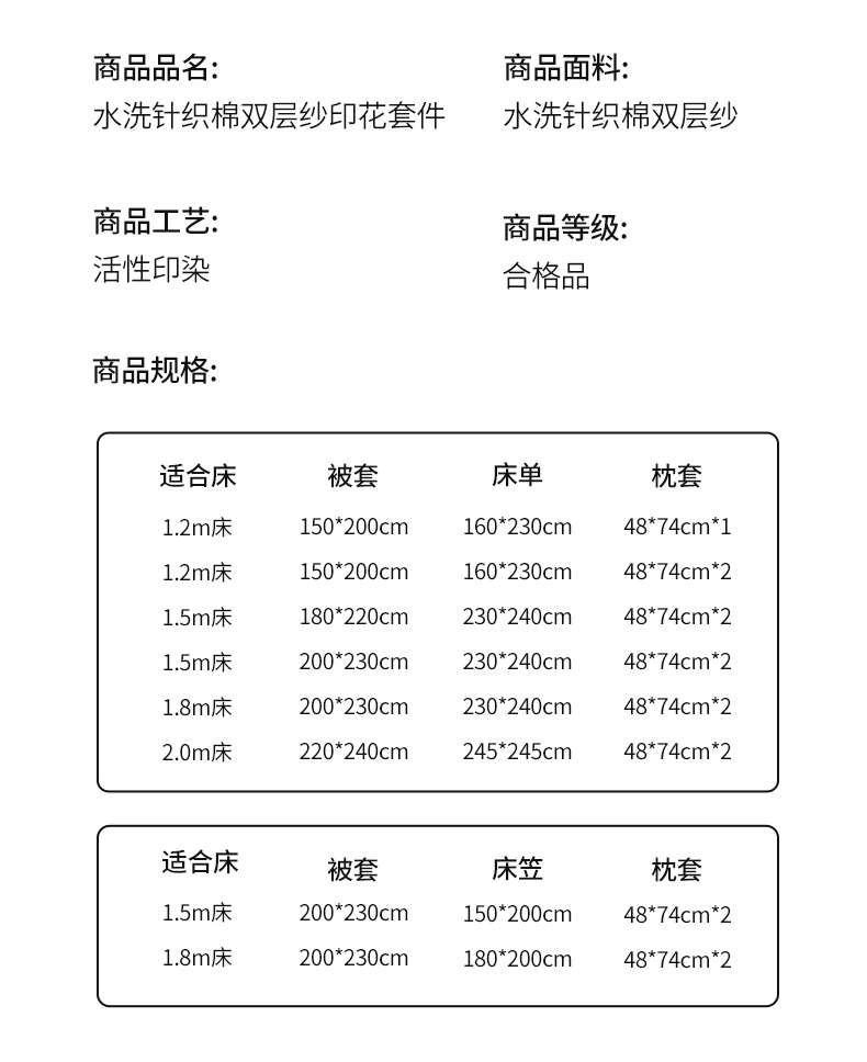 1.5m床单款四件套被套:200x230cm | ¥52.00 |