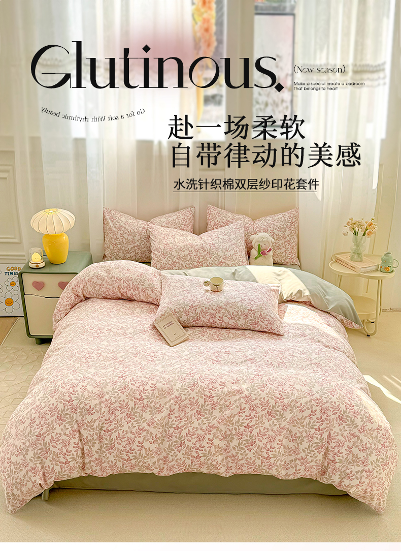 当前位置: 91家纺网 > 商品网购 > 床品套件 > 四件套 > 针织棉四件套 > 丝芙妮家居2025新款水洗针织棉双层纱印花四件套 初夏薄荷