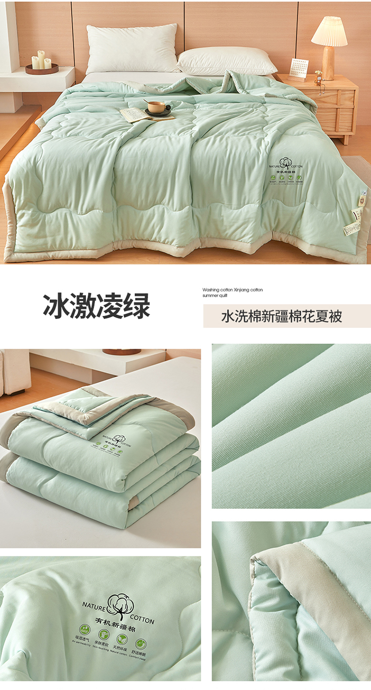 商品名称:易博家纺 2025新款格子纯色水洗棉无印风百分百新疆棉花夏被夏凉被被子被芯 冰激凌绿