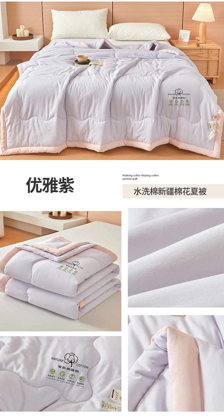 商品名称:易博家纺 2025新款格子纯色水洗棉无印风百分百新疆棉花夏被夏凉被被子被芯 优雅紫