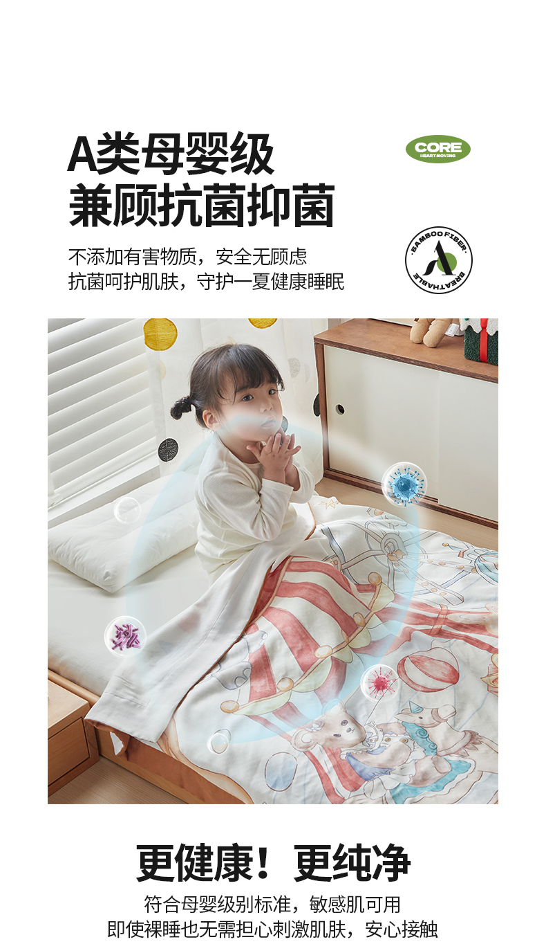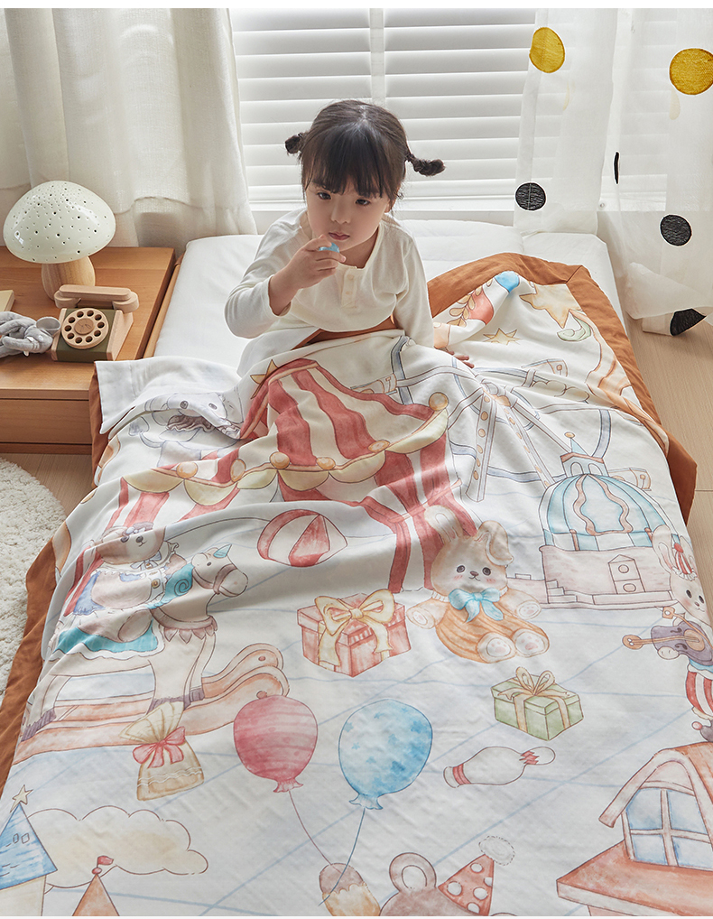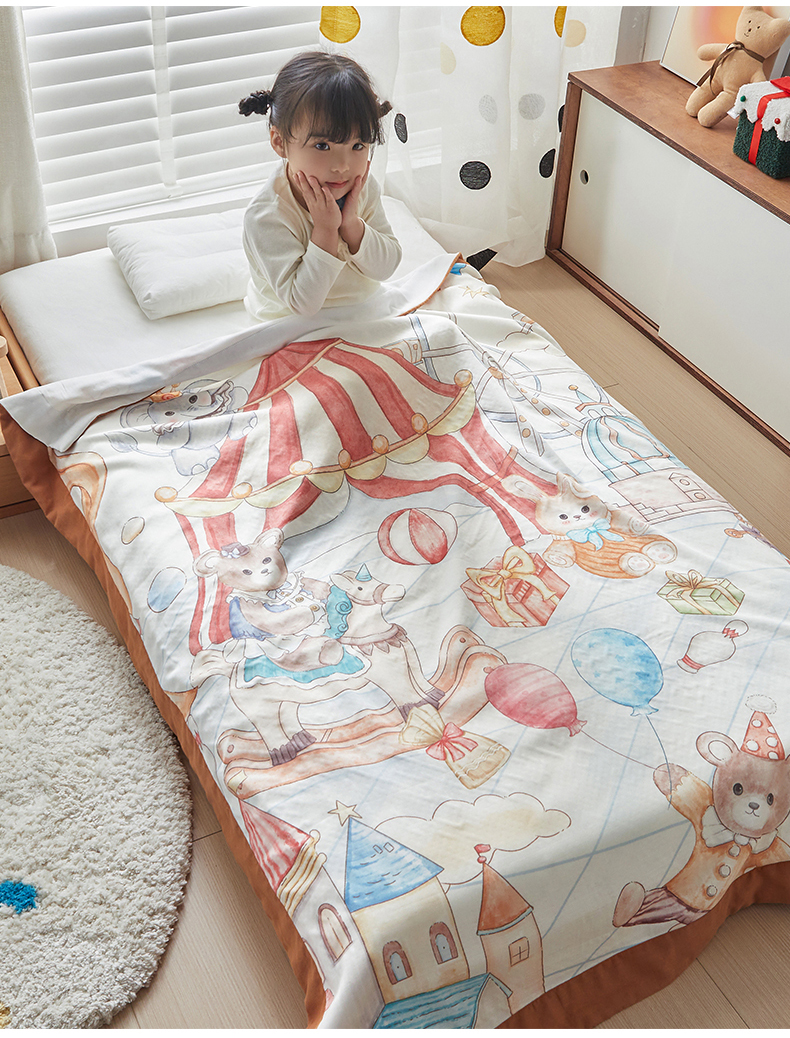 荷马之梦 2025新款天竹系列—A类原创手绘风大版天竹纤维四层纱儿童盖毯 马戏团