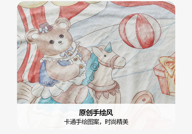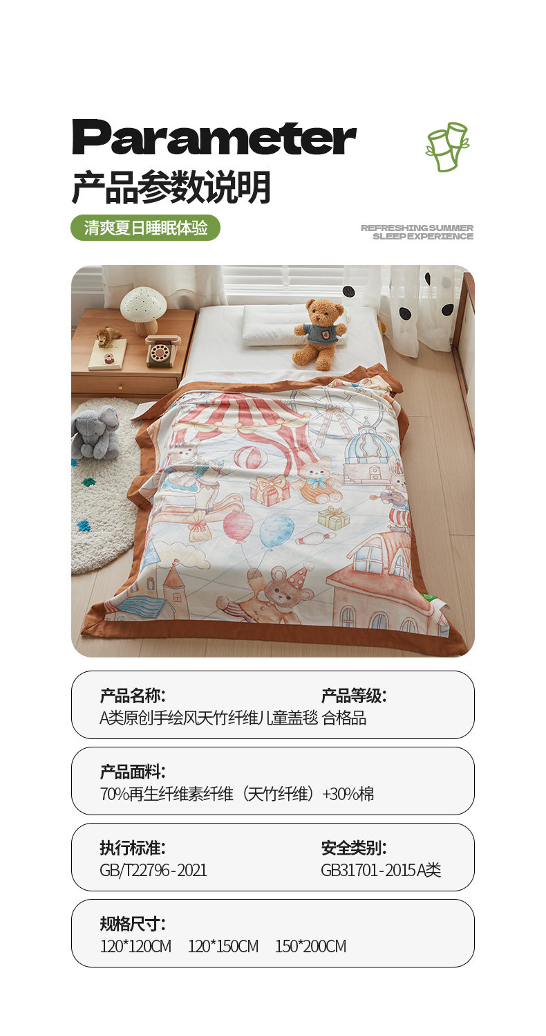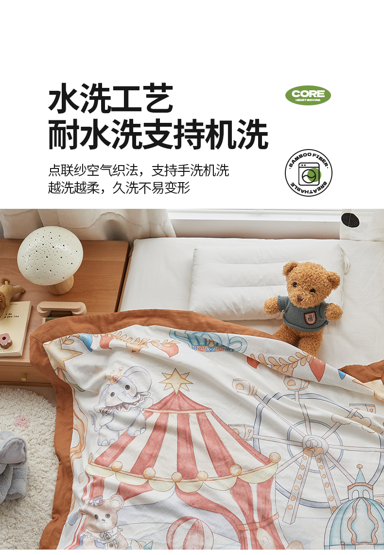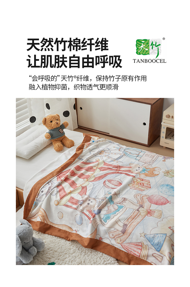 商品名称:荷马之梦 2025新款天竹系列—A类原创手绘风大版天竹纤维四层纱儿童盖毯 马戏团