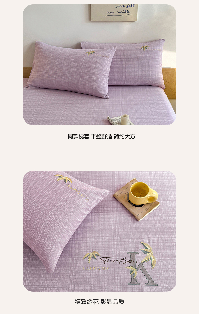 • 91家纺网 家纺一手货源 找家纺 布柔 2025新款100%全棉纯棉老粗布绣花印花凉席单品床笠 米多紫床笠