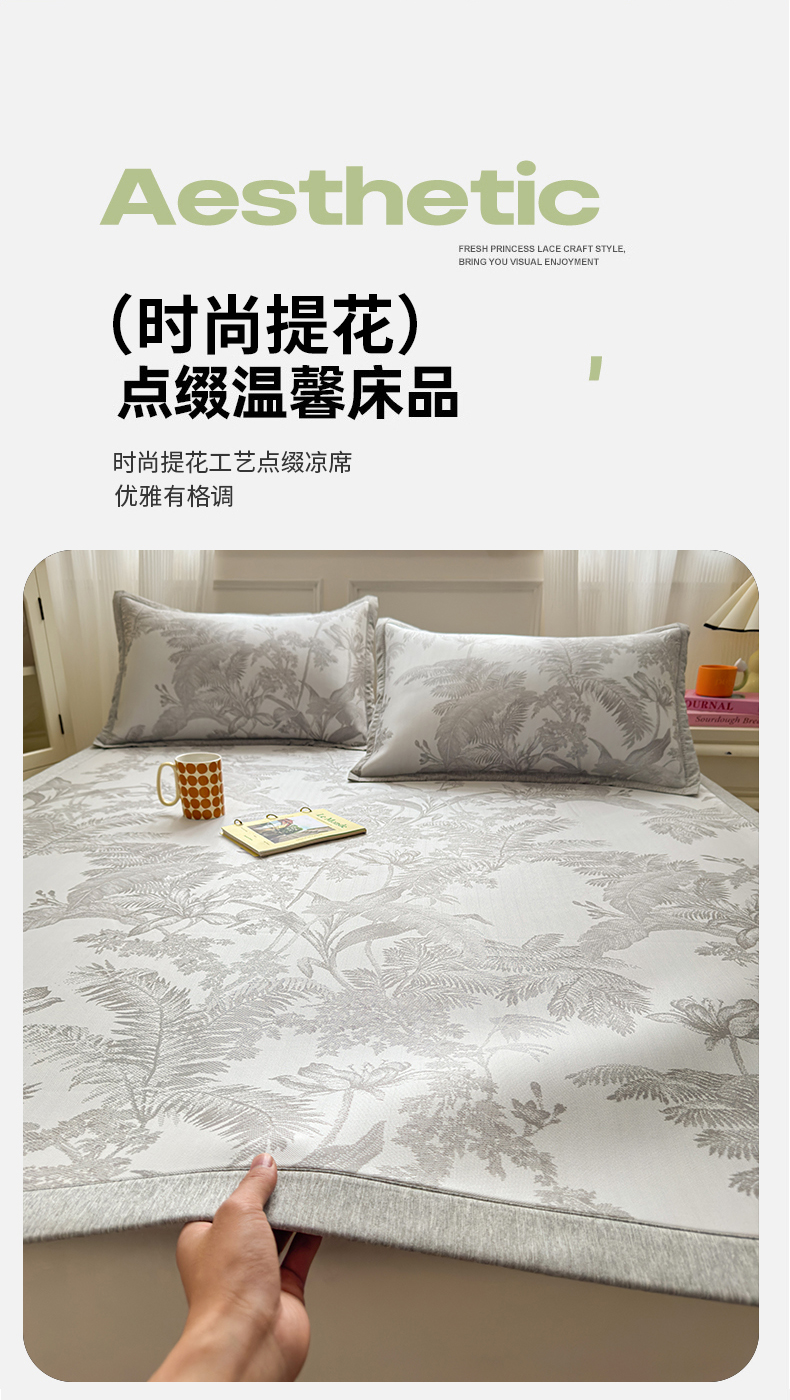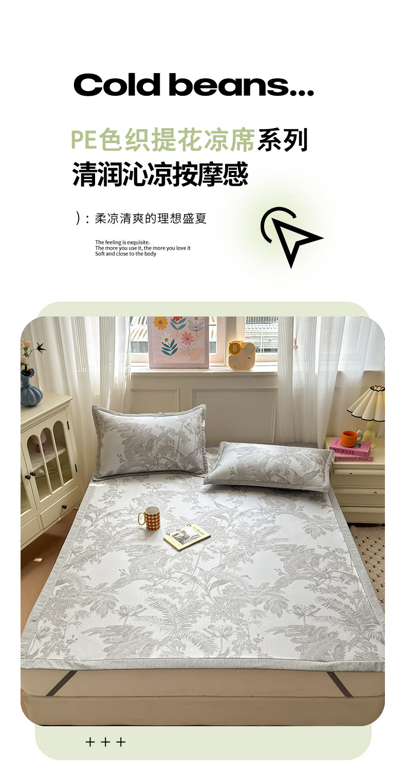 (总)花漾家居 2025新款A类色织提花PE凉感丝凉席三件套床单床笠款,床笠款-芭蕉蓝,床笠款-含羞灰,床笠款-江南绿,床笠款-蔷薇粉,床单款-芭蕉灰,床单款-芭蕉蓝,床单款-含羞灰,床单款-江南灰,床单款-江南绿,床单款-蔷薇绿,床单款-蔷薇粉,床单款-银河