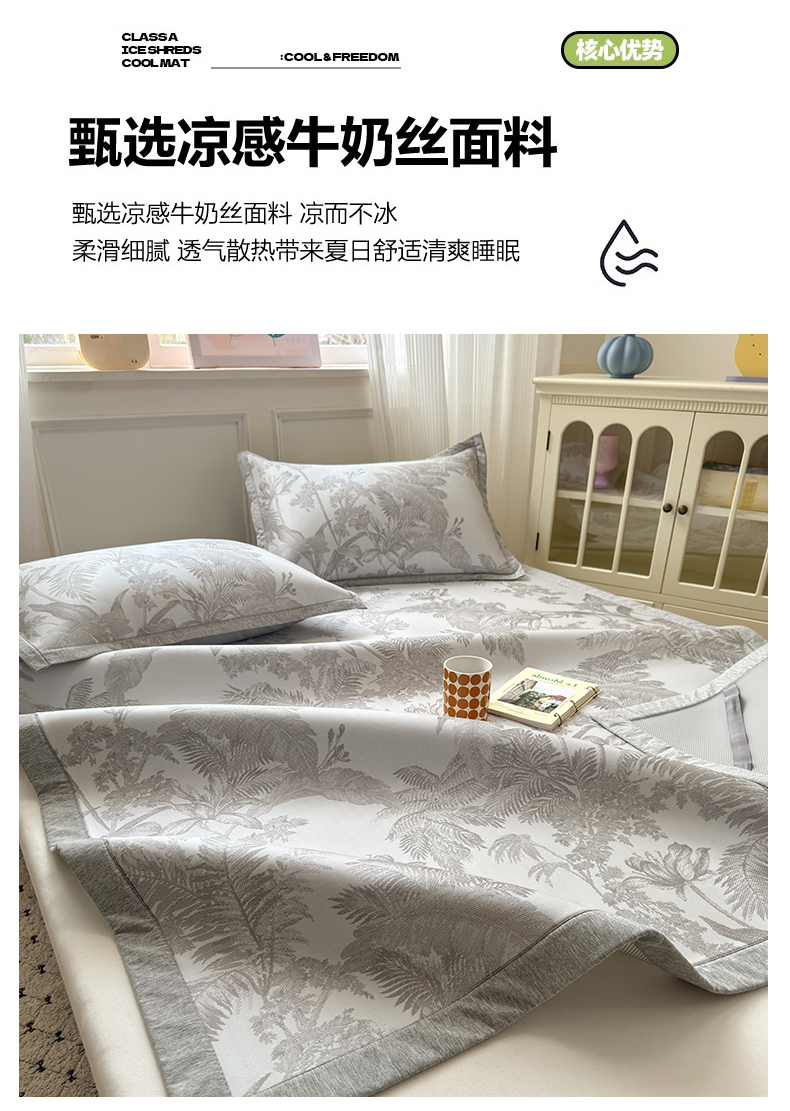花漾家居 2025新款A类色织提花PE凉感丝凉席三件套床单床笠款 床单款-芭蕉灰