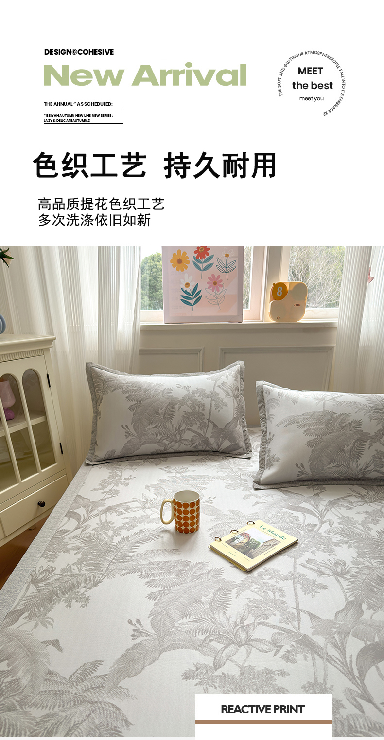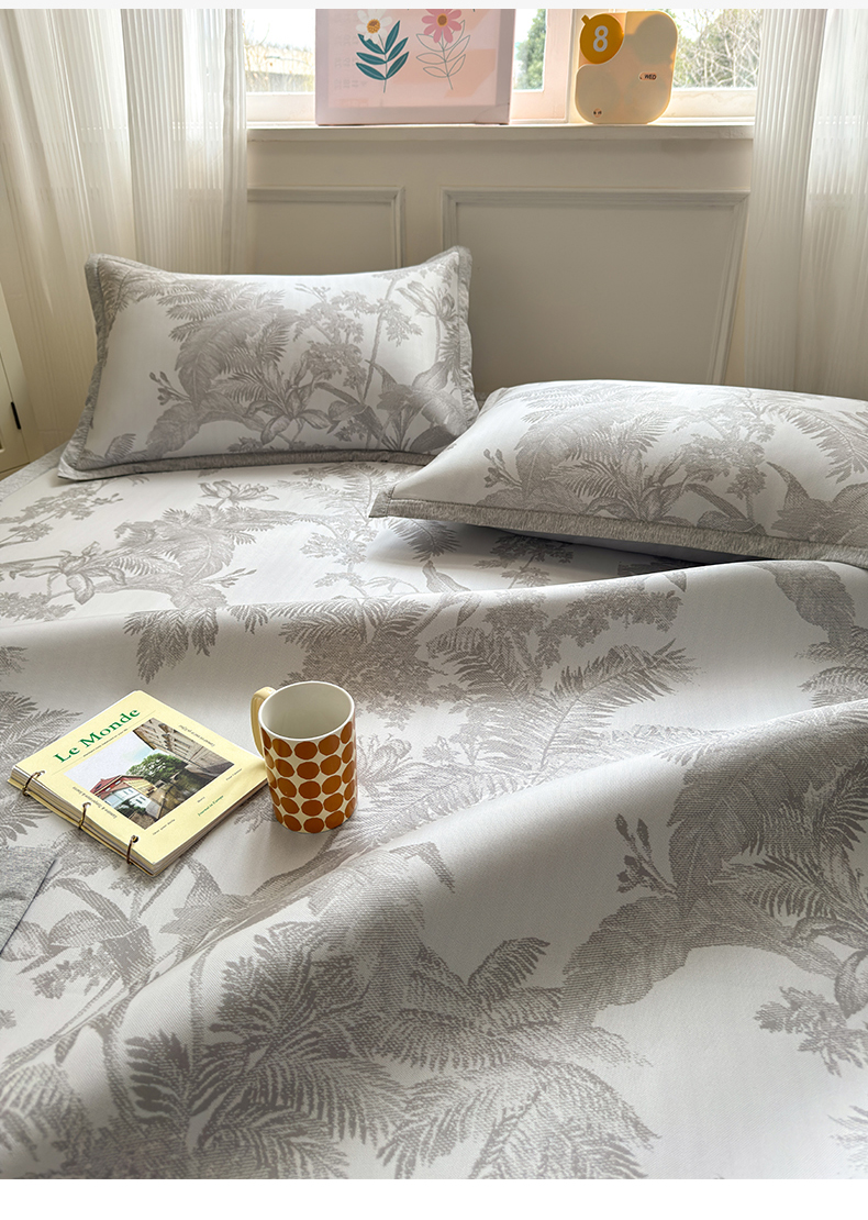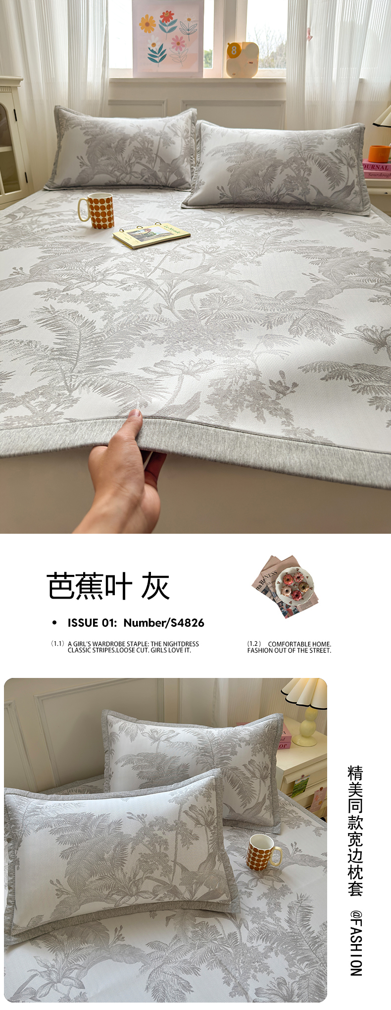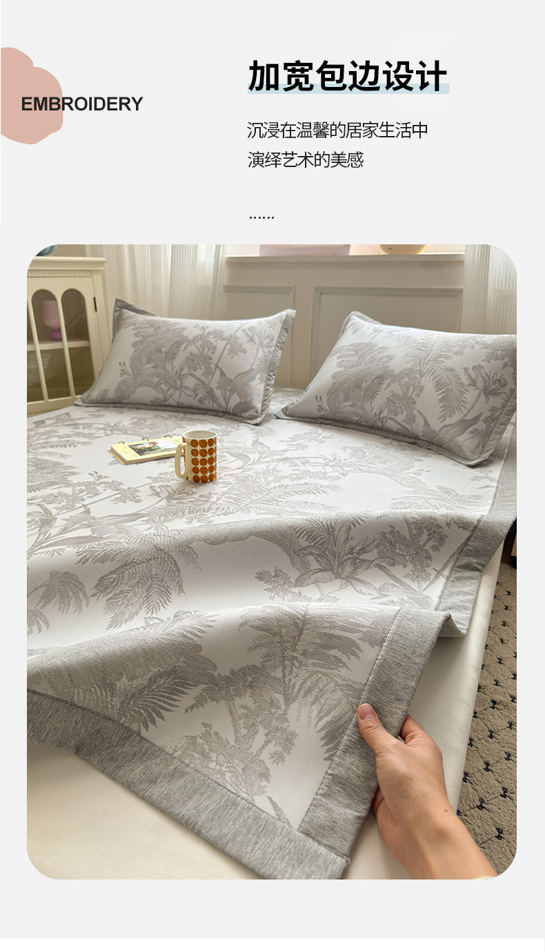 商品名称:花漾家居 2025新款A类色织提花PE凉感丝凉席三件套床单床笠款 床单款-芭蕉灰
