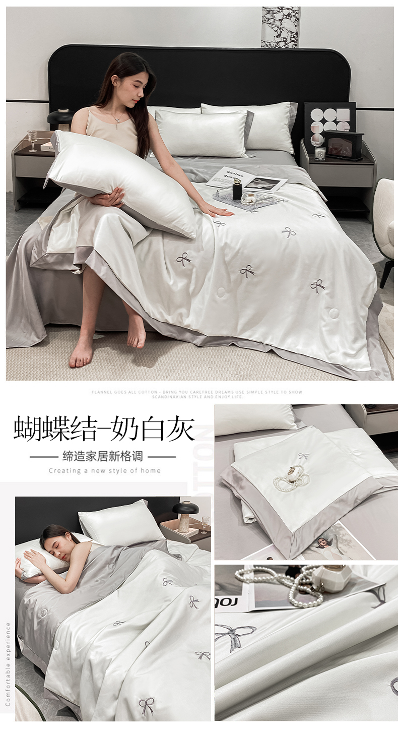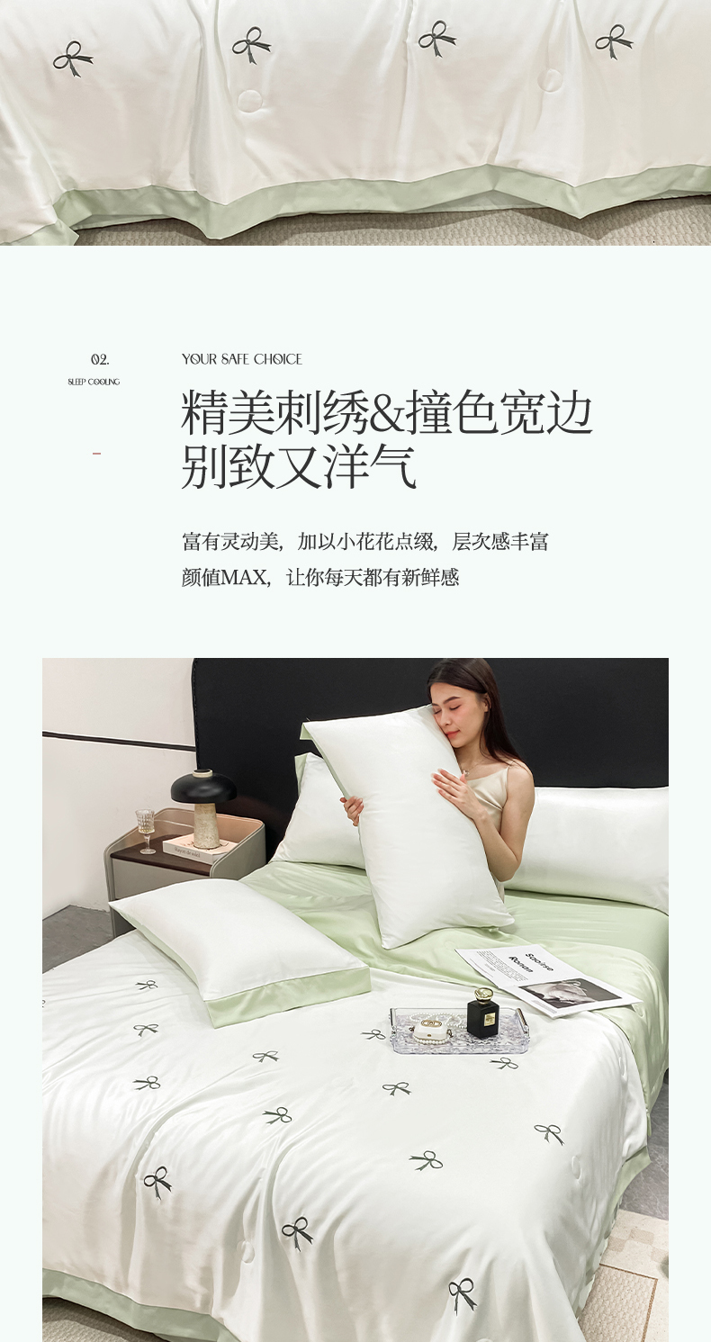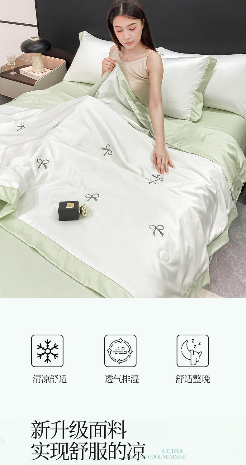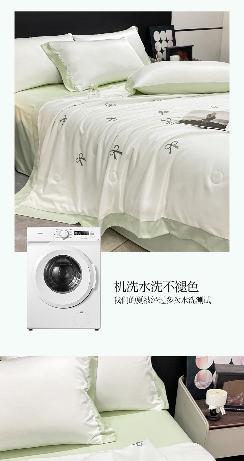 当前位置: 91家纺网 > 商品网购 > 床品套件 > 四件套 > 夏被四件套 > 牛牛家纺 2025新款水洗冰丝刺绣夏被四件套 蝴蝶结-奶白绿