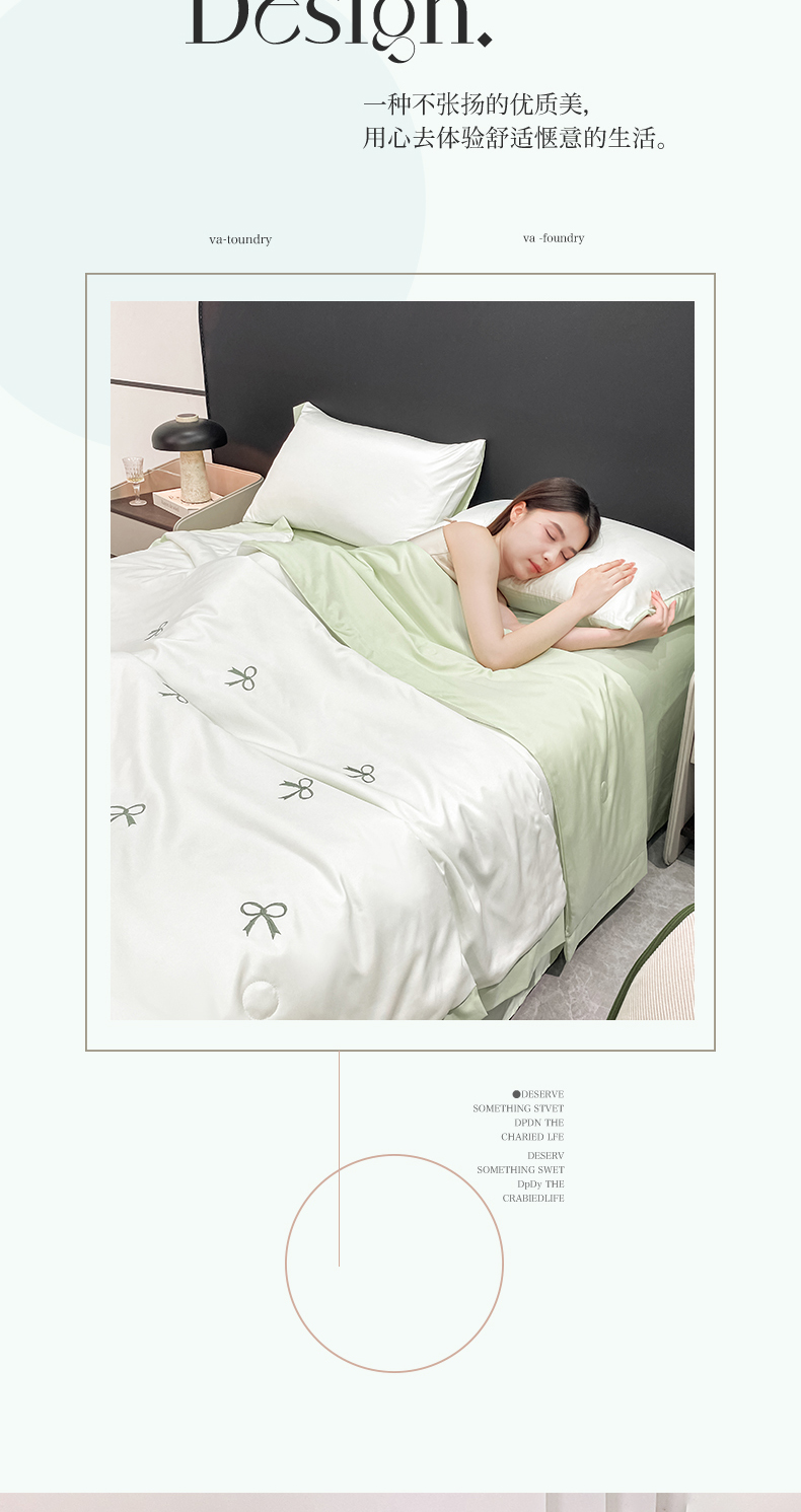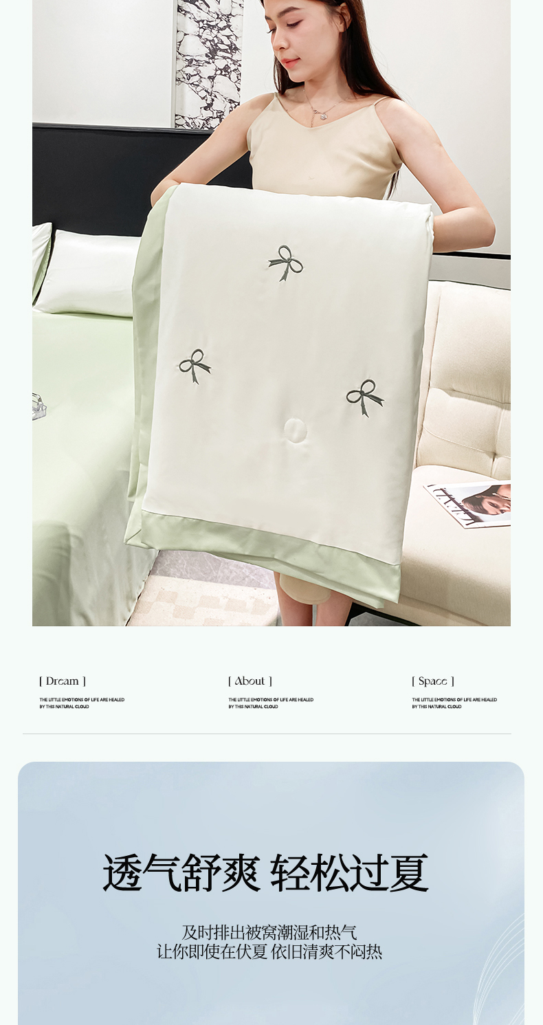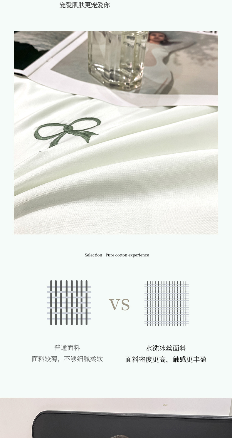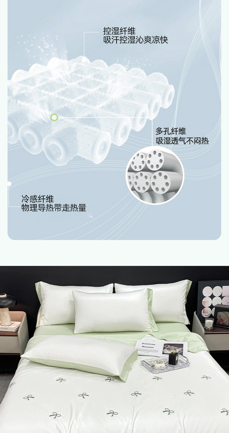 当前位置: 91家纺网 > 商品网购 > 床品套件 > 四件套 > 夏被四件套 > 牛牛家纺 2025新款水洗冰丝刺绣夏被四件套 蝴蝶结-奶白绿