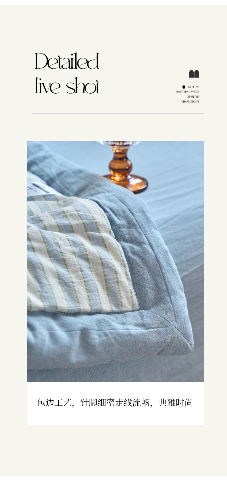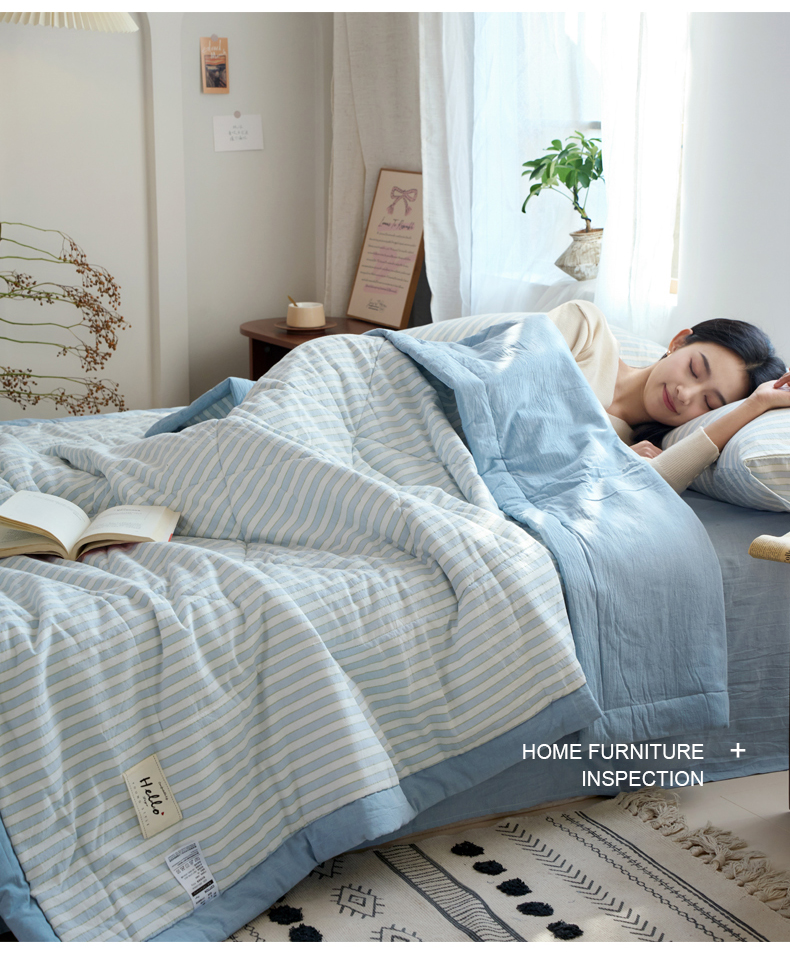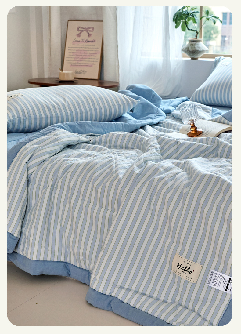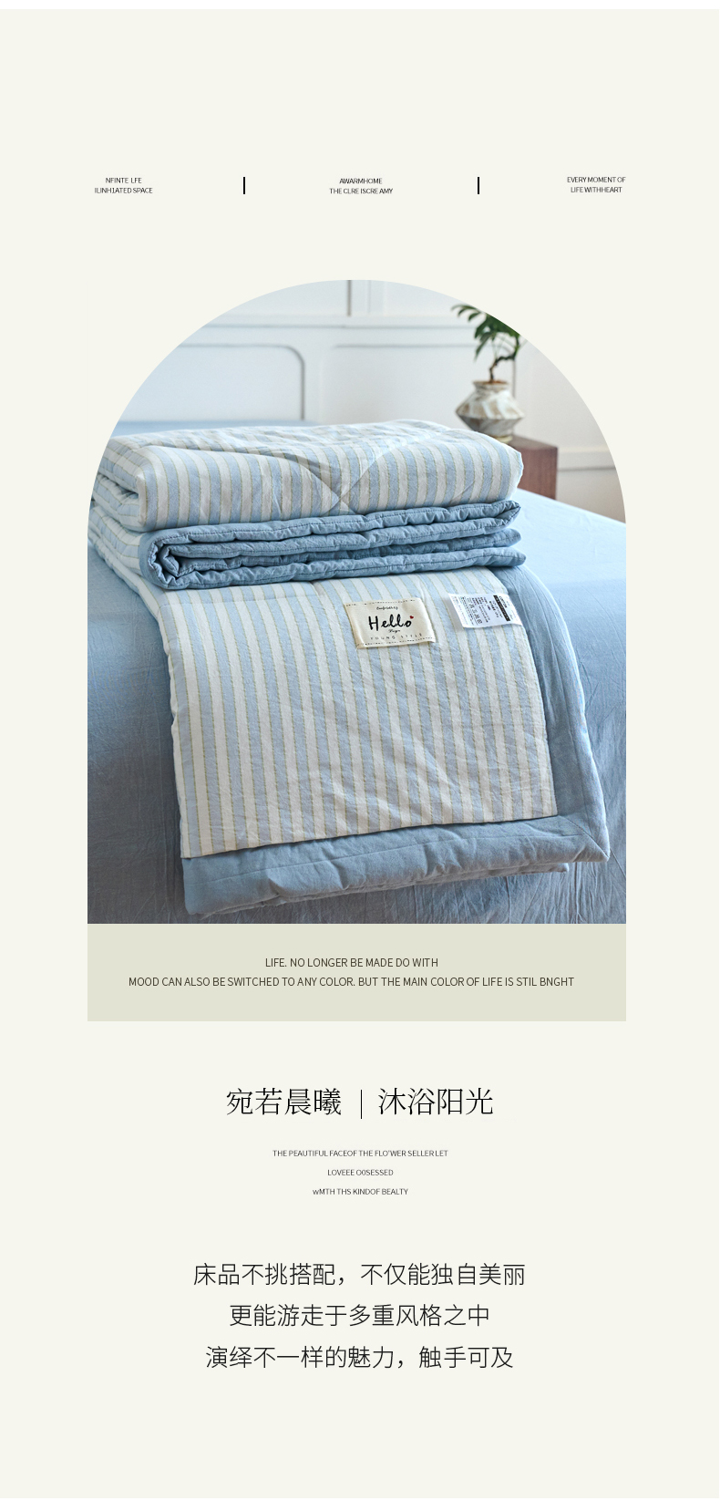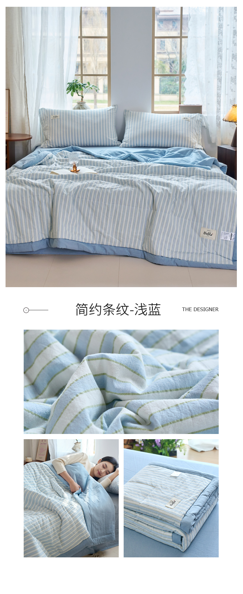 • 91家纺网 家纺一手货源 找家纺 恋人优选 2025新款纯棉色织水洗夏被 简约条纹-浅蓝