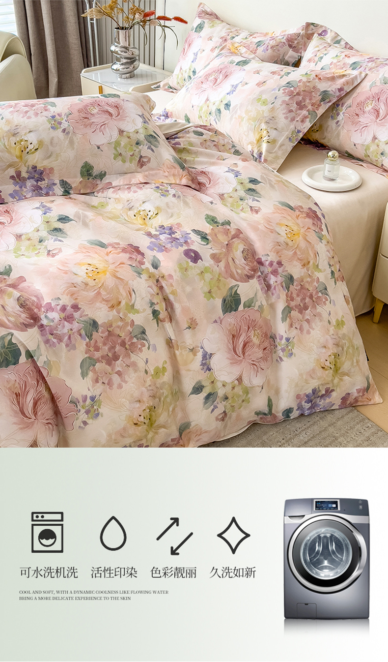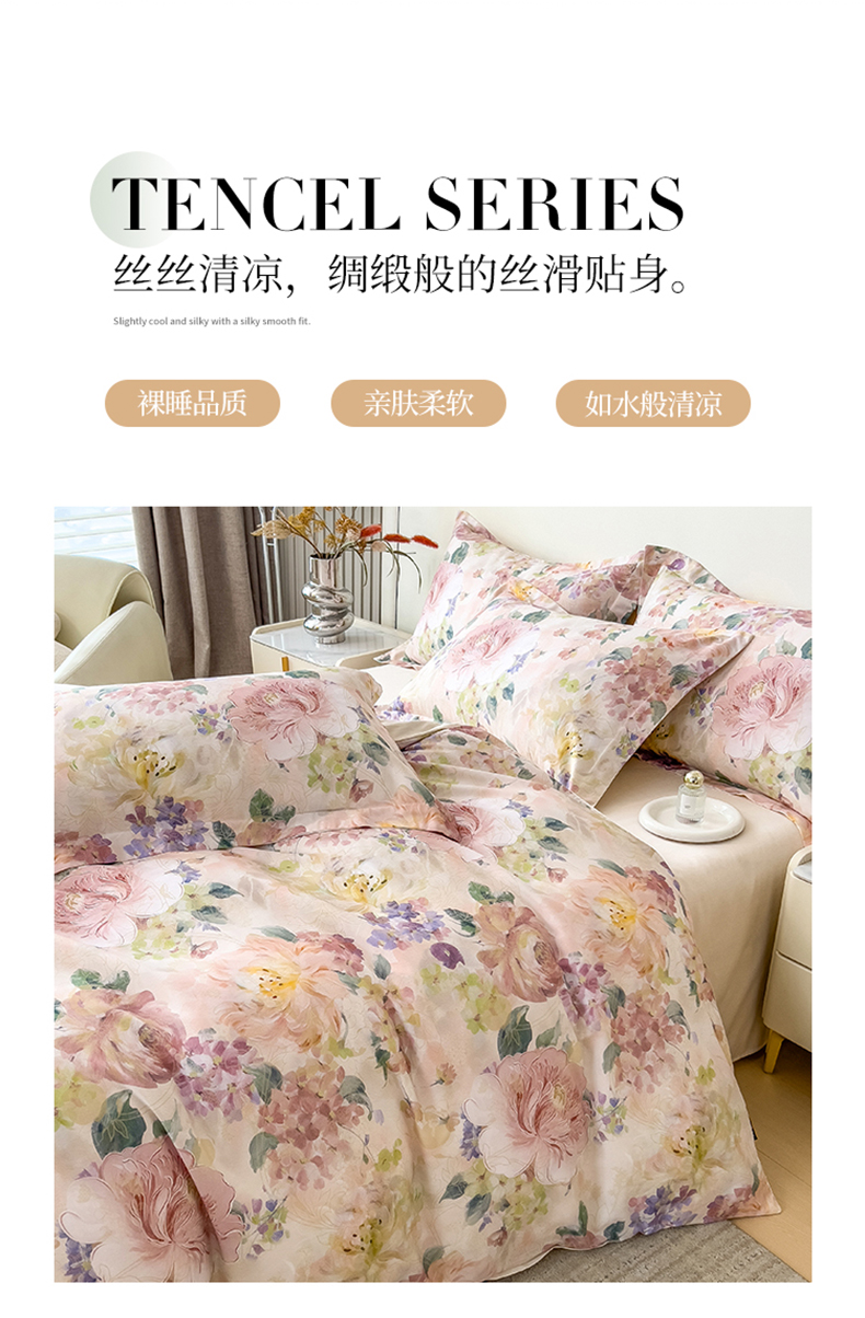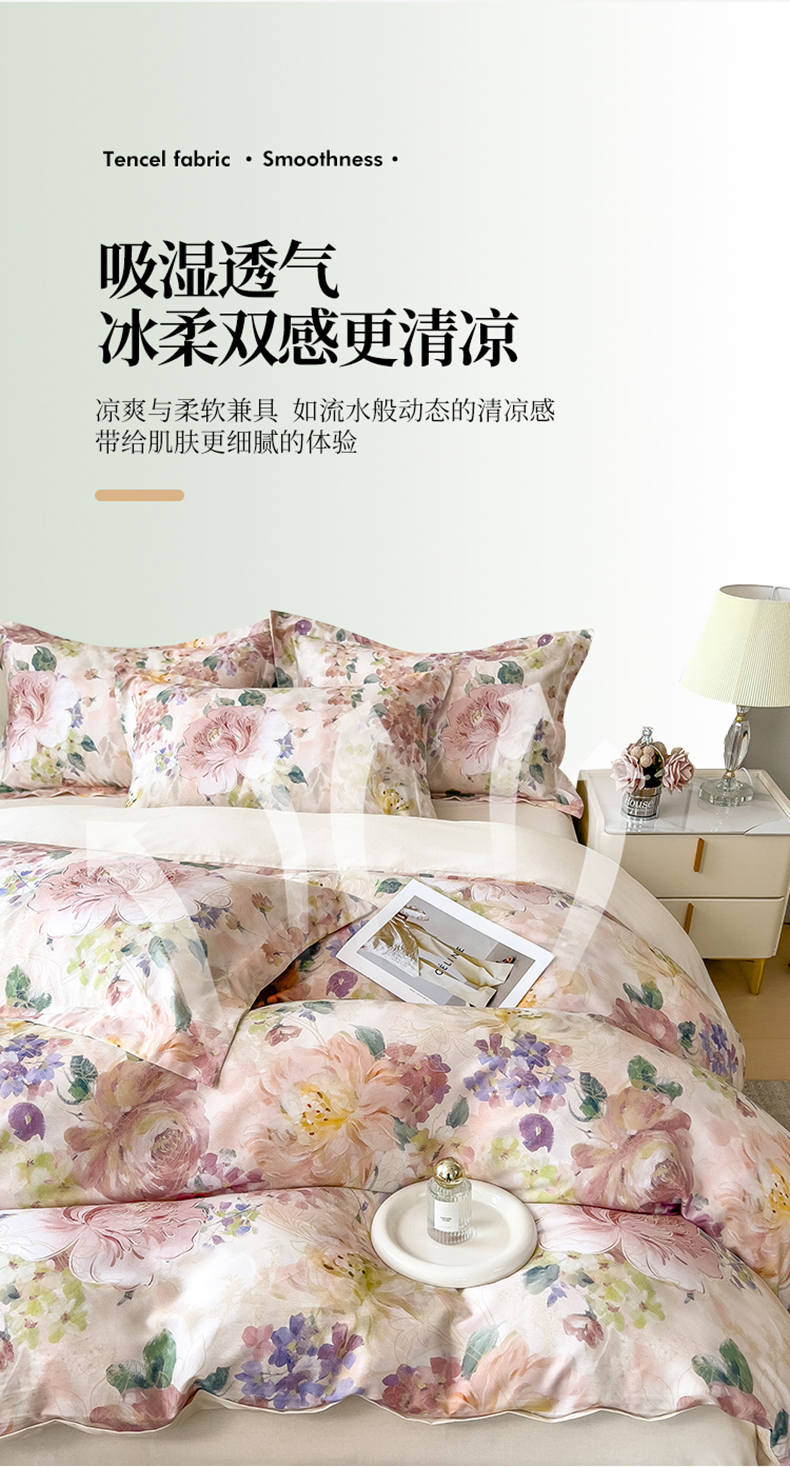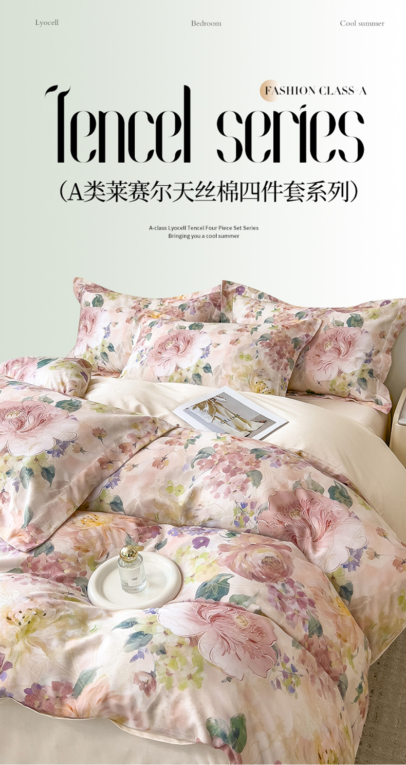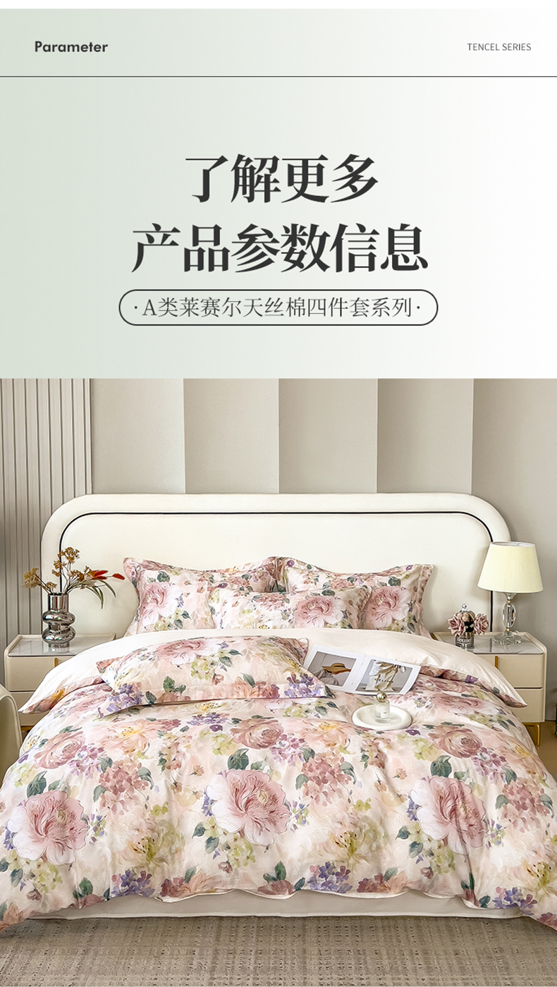 (总)芃成家纺 2025新款A类莱赛尔天丝棉四件套,梦幻花海,缤纷花语,国色天香,花开如画,花舞,奥斯汀玫瑰,春暖花开-粉,春暖花开-紫,春色写意-灰,春色写意-兰,冬雪寒香,繁花满庭,古典玫瑰,国色花韵-粉,国色花韵-玉,花涧入梦,秘境灰,莫奈花园,青花瓷,秋日私语,水墨花卉,晚秋,絮语,烟云牡丹