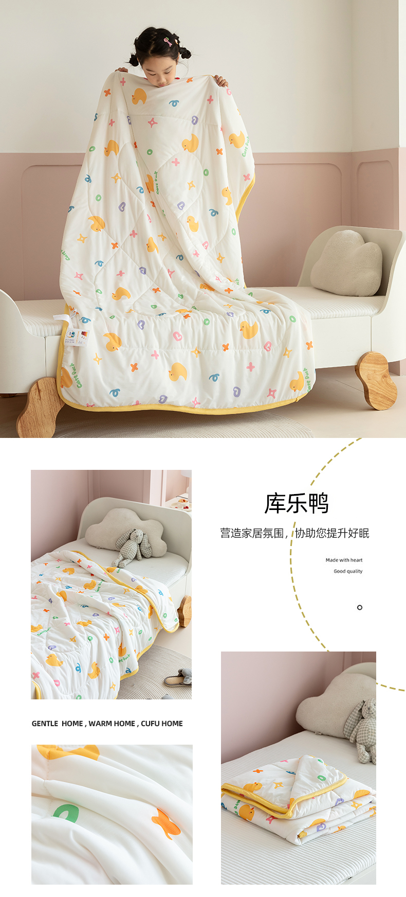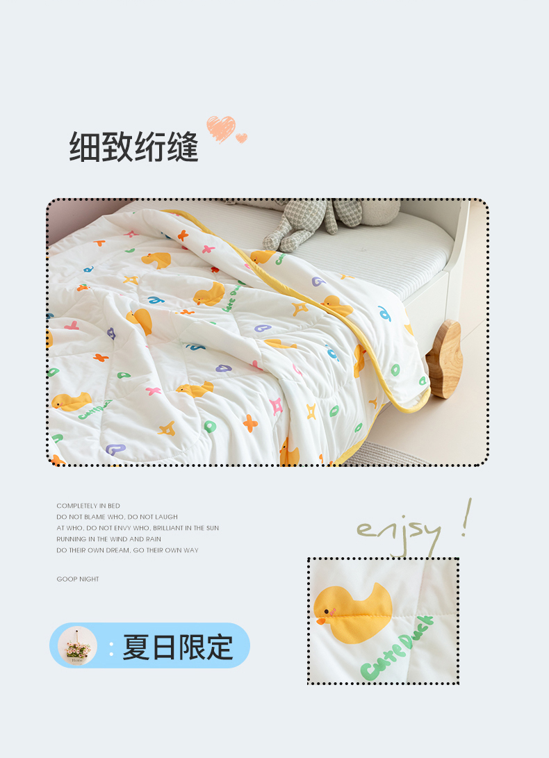 商品名称:艾佳宝贝 2025春夏新款A类凉感丝儿童糖果抗菌夏被 库乐鸭