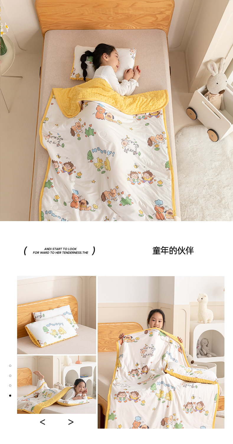 艾佳宝贝 2025新款A类豆豆针织儿童多功能盖毯安抚夏被-模特图 童年的伙伴