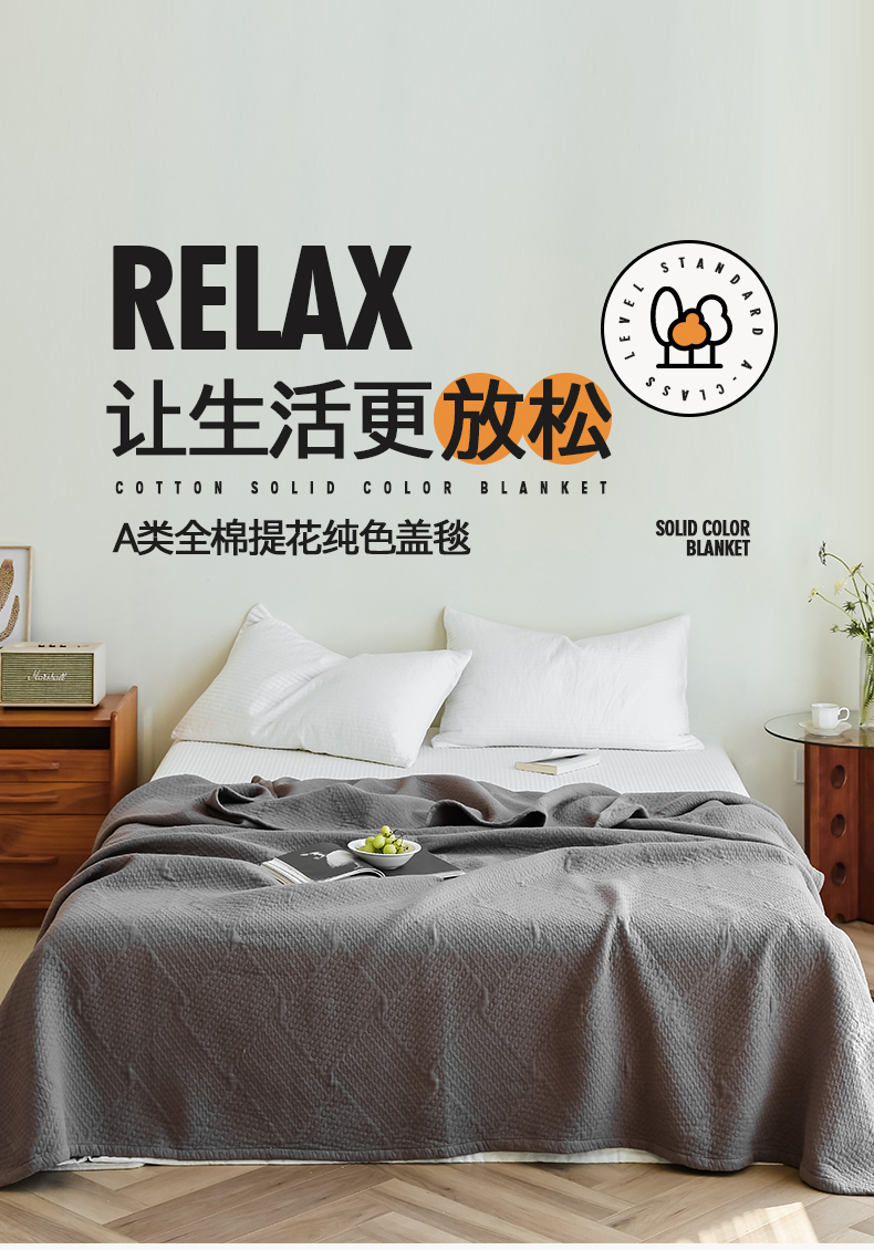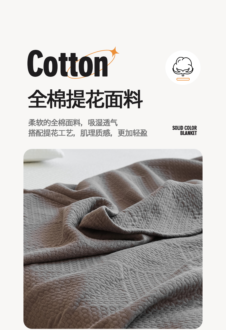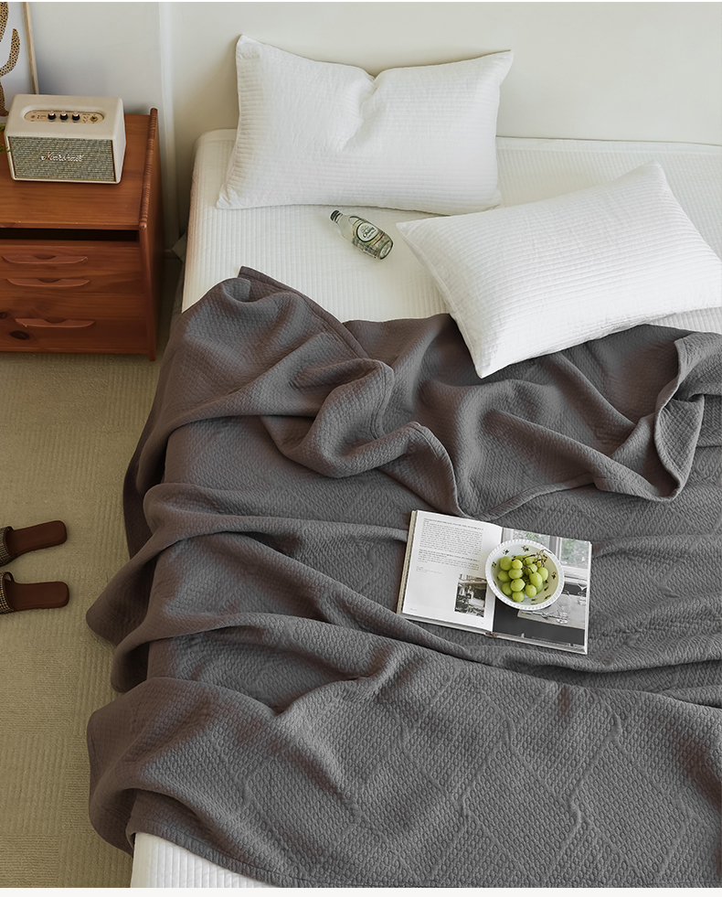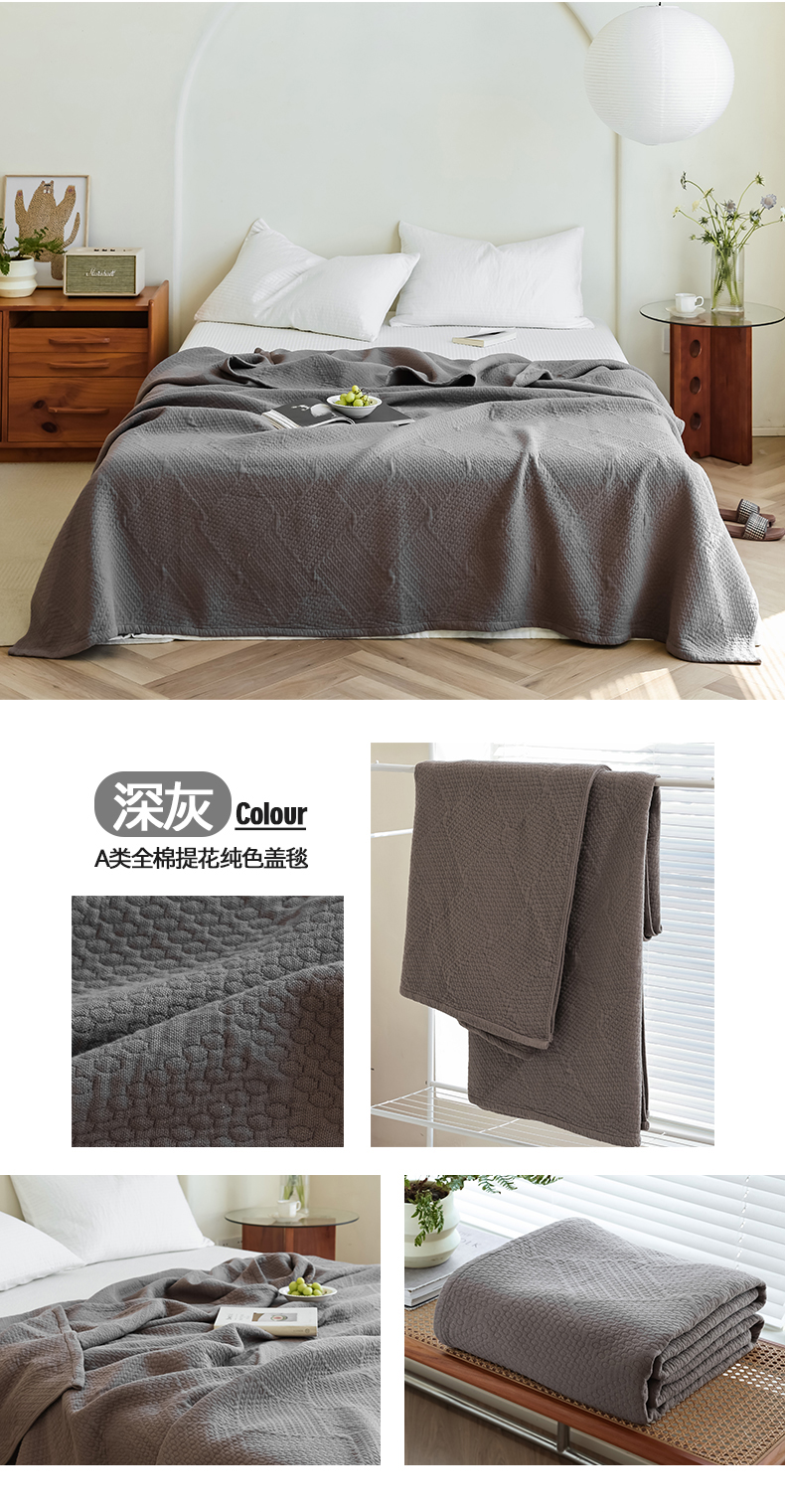 商品名称:雯雨家纺2025新款A类全棉加厚六层纱提花纯色盖毯 六层纱-深灰