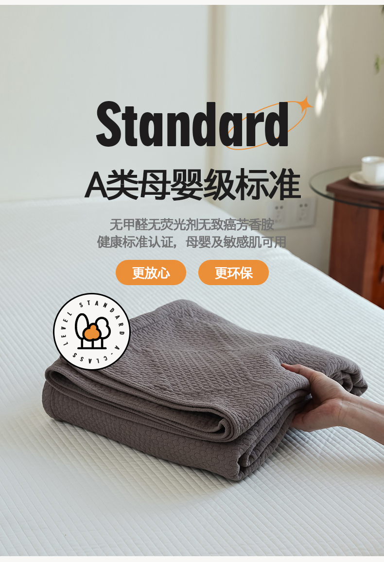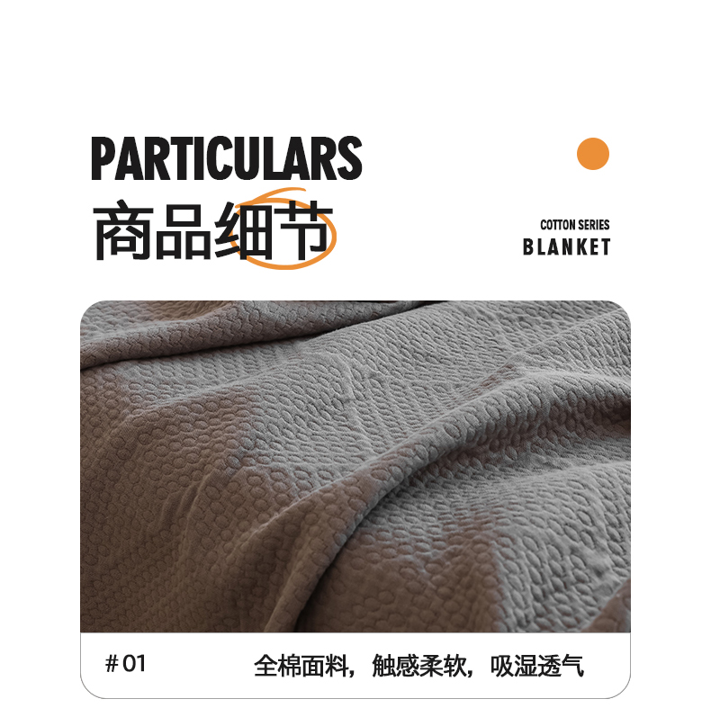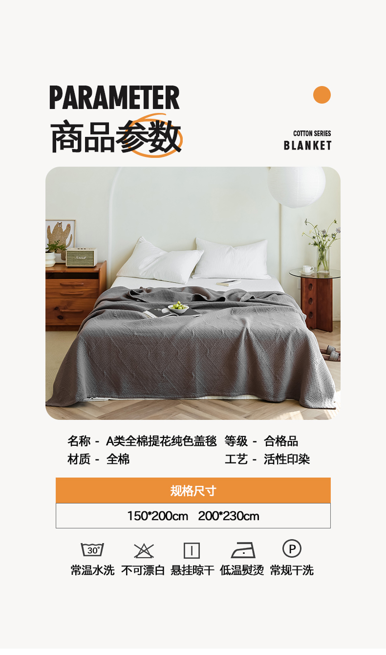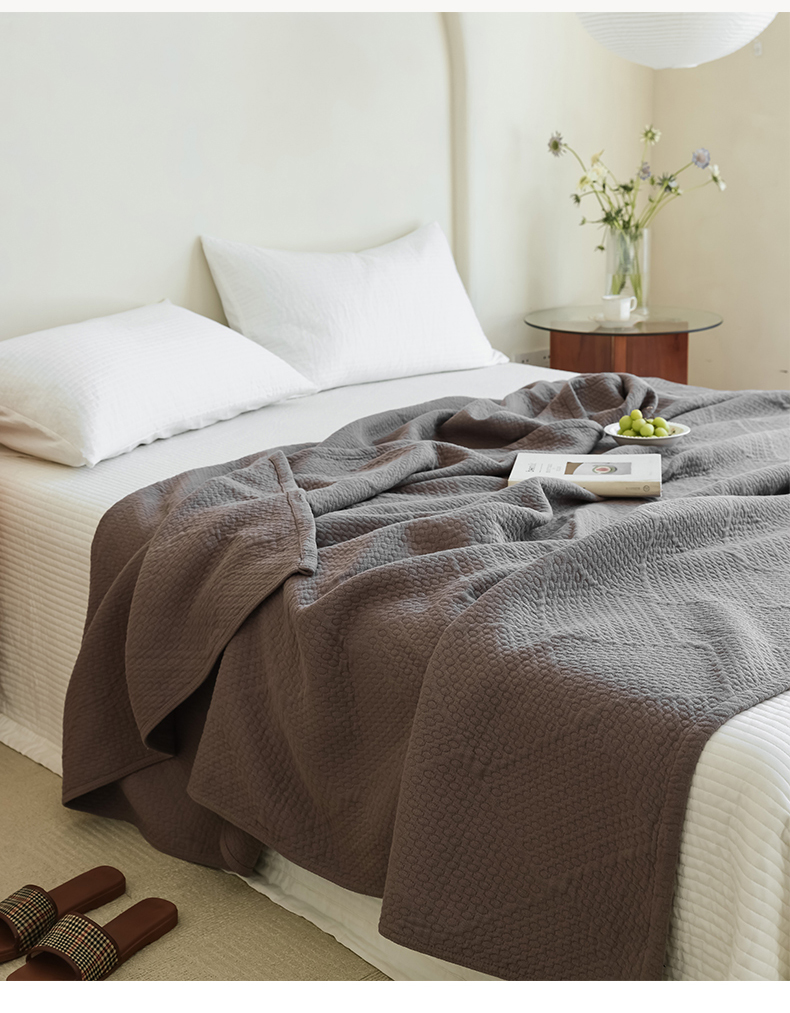商品名称:雯雨家纺2025新款A类全棉加厚六层纱提花纯色盖毯 六层纱-深灰