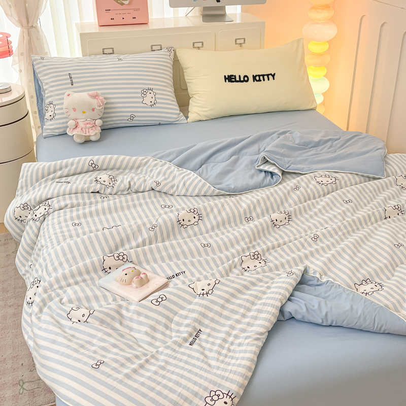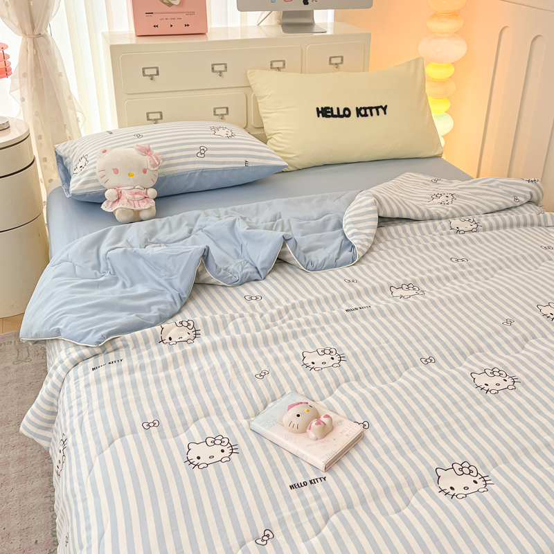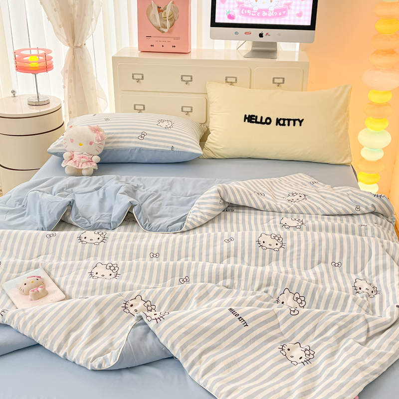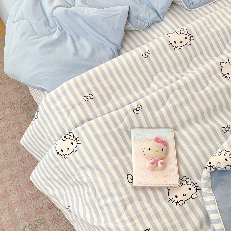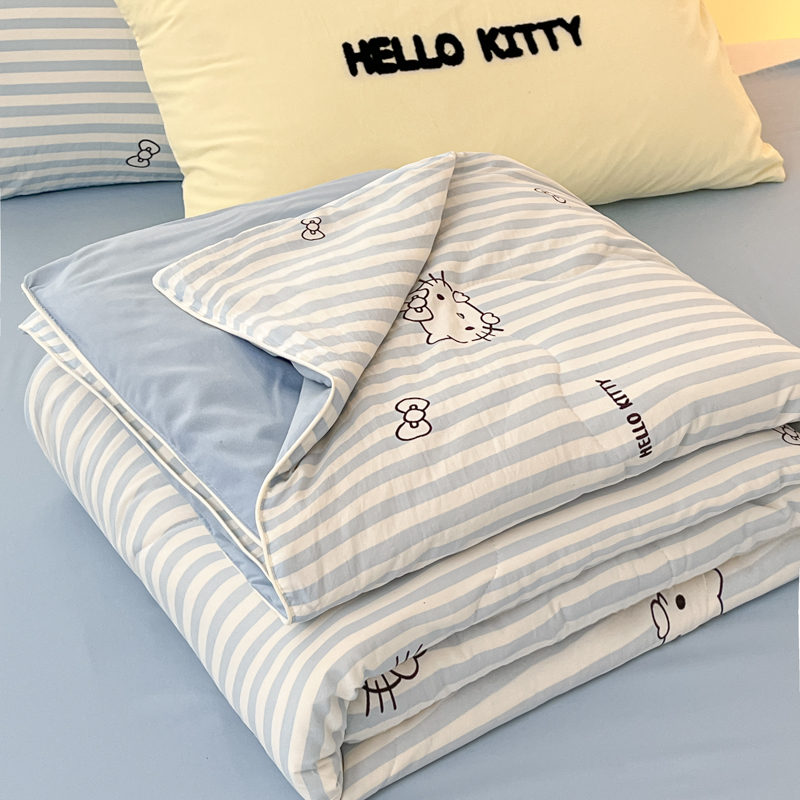 贝扬思家纺 2025新款三丽鸥简约条纹夏被夏凉被空调被套件系列 奶油条kt蓝蓝