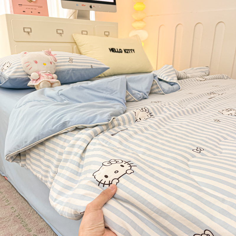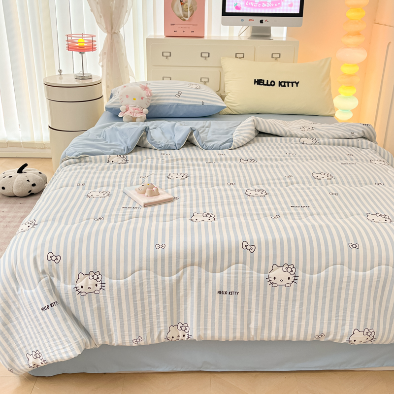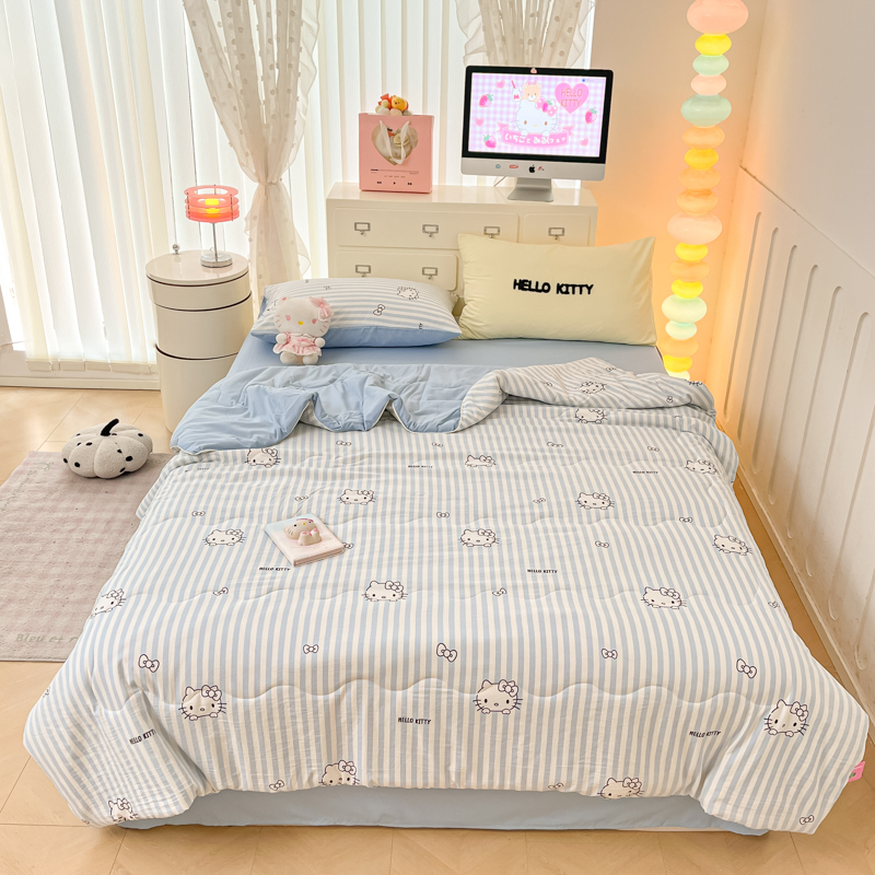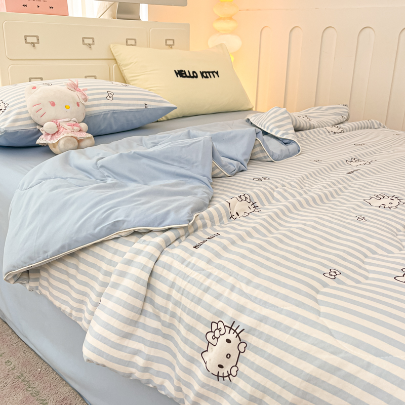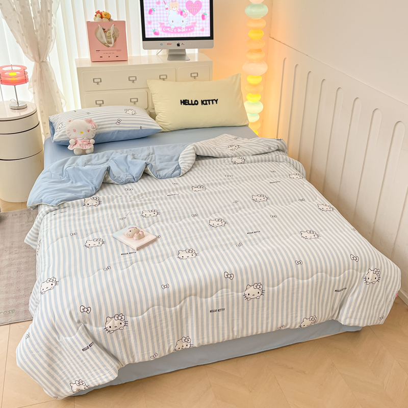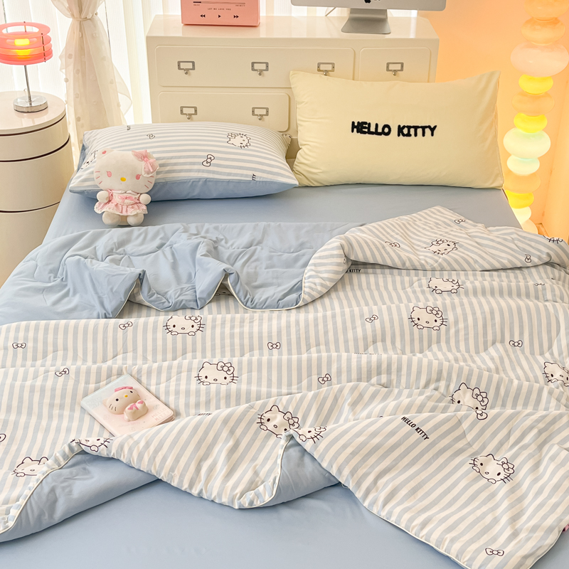贝扬思家纺 2025新款三丽鸥简约条纹夏被夏凉被空调被套件系列 奶油条kt蓝蓝