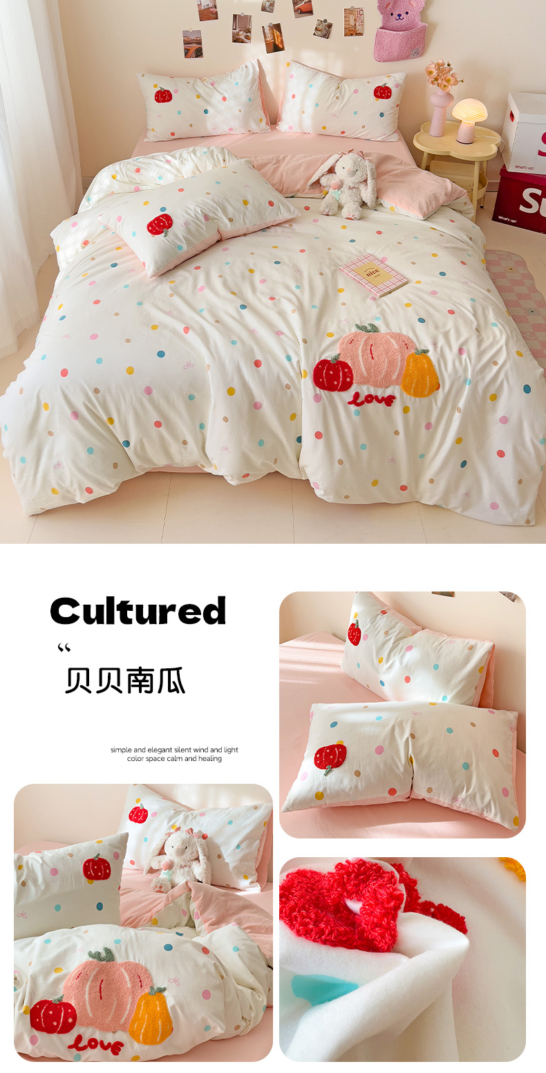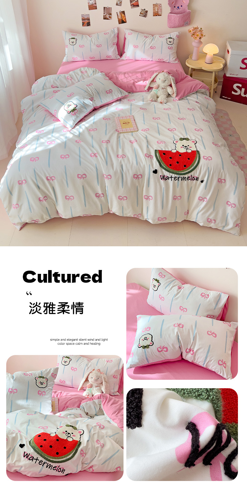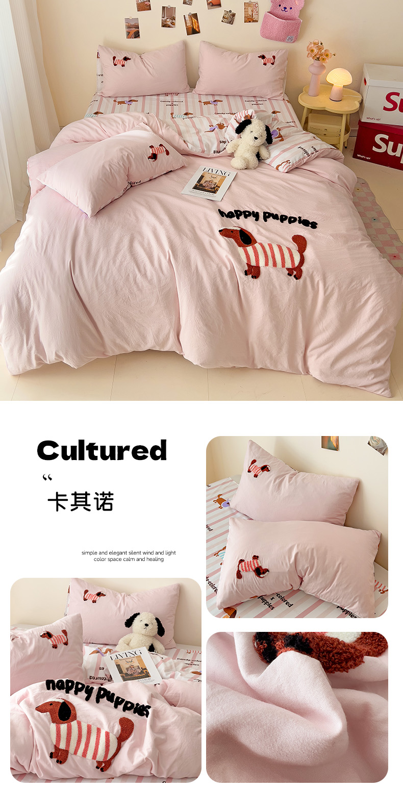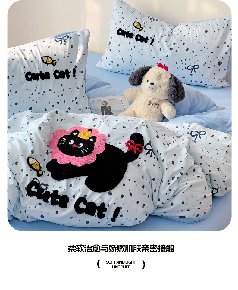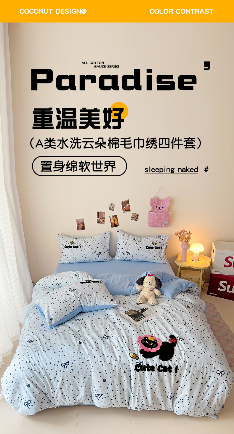 商品名称:梧桐家居 2025新款水洗云朵棉毛巾绣印花加绣花系列四件套 欢乐园