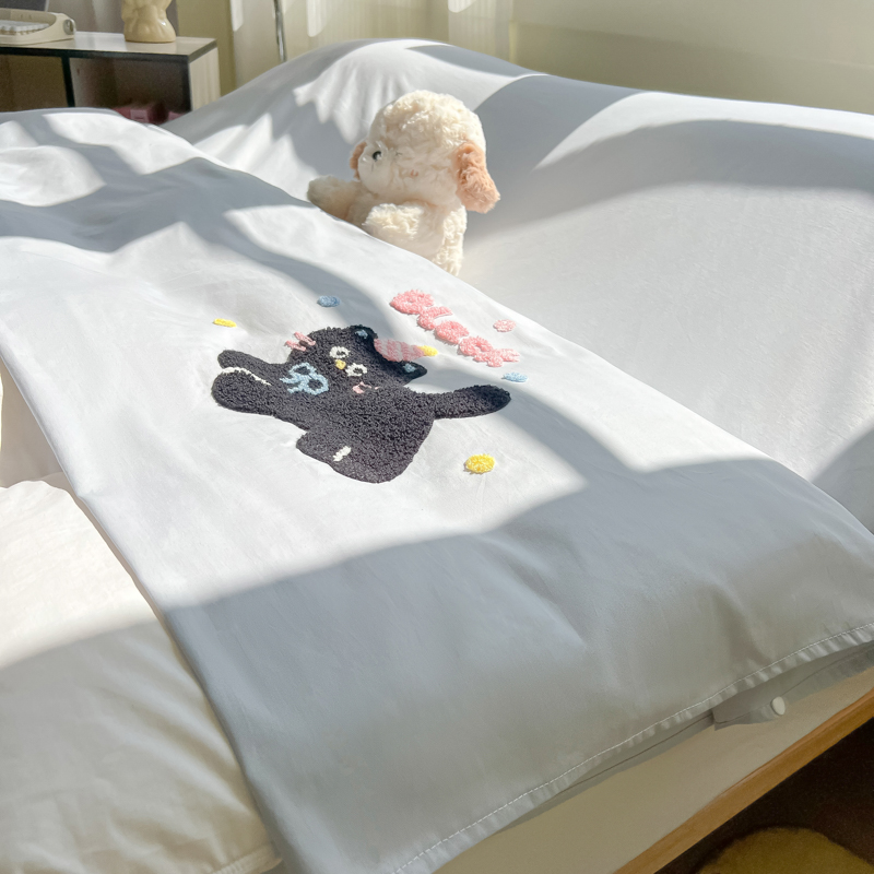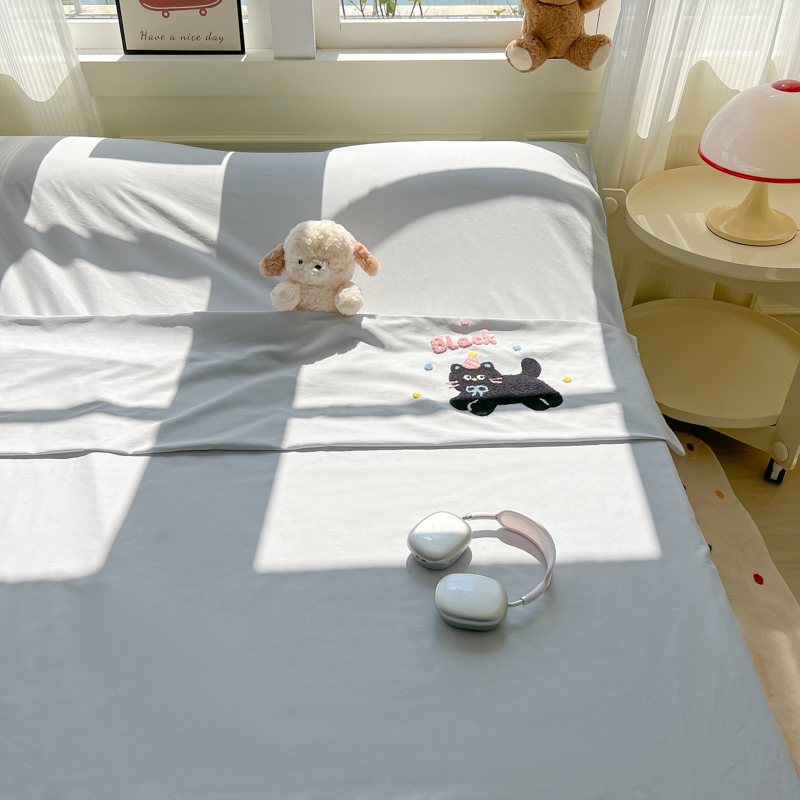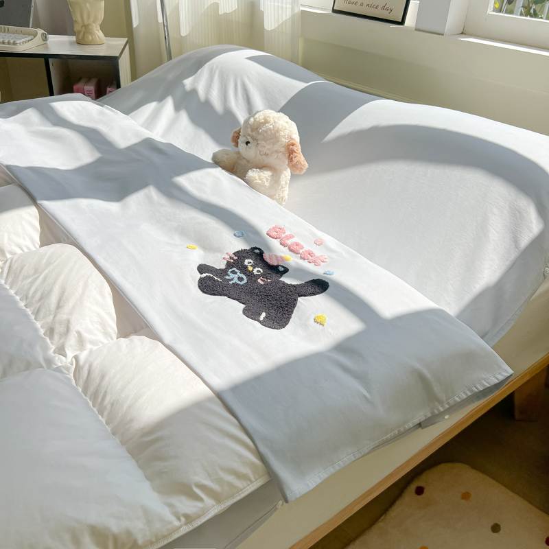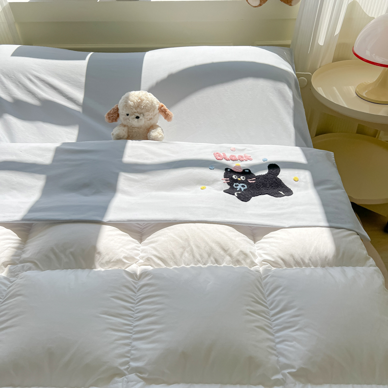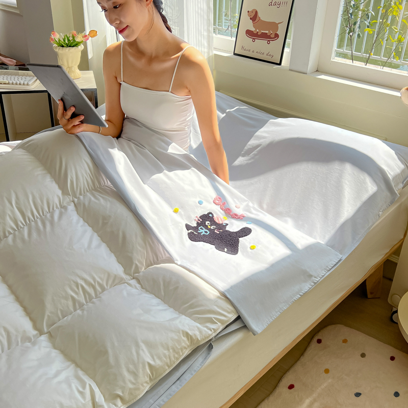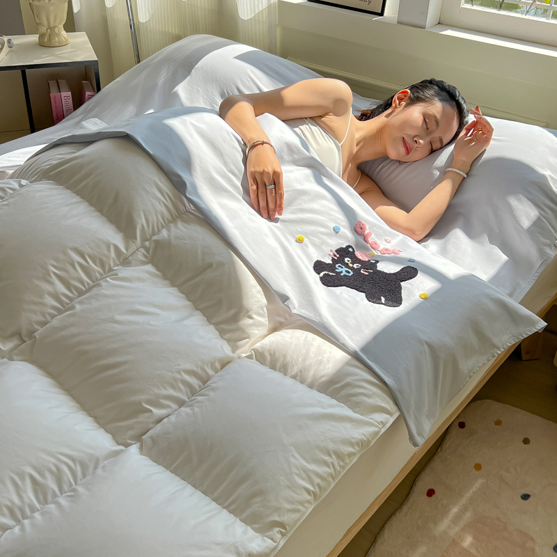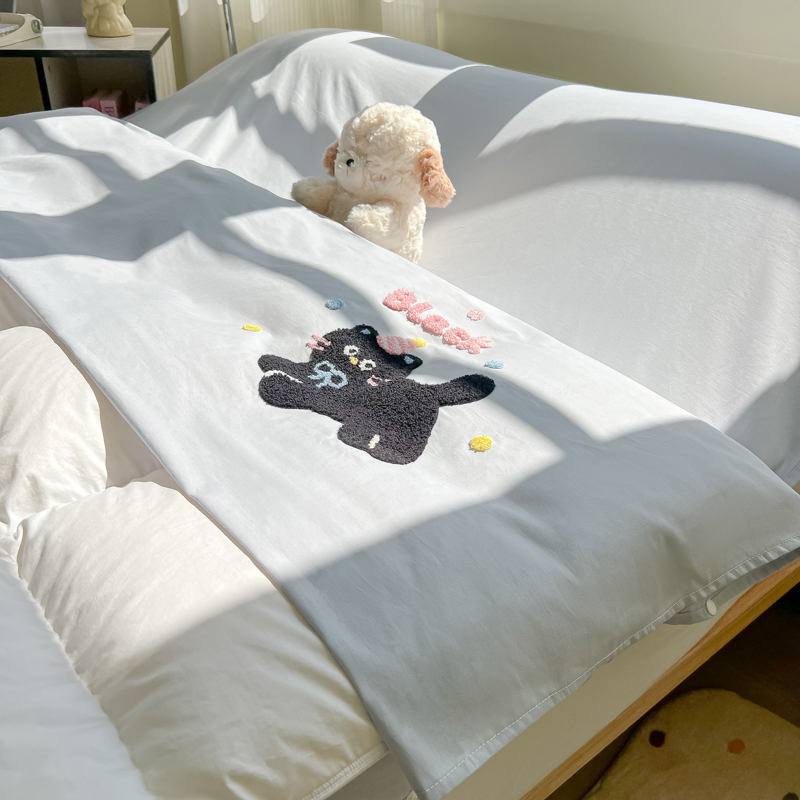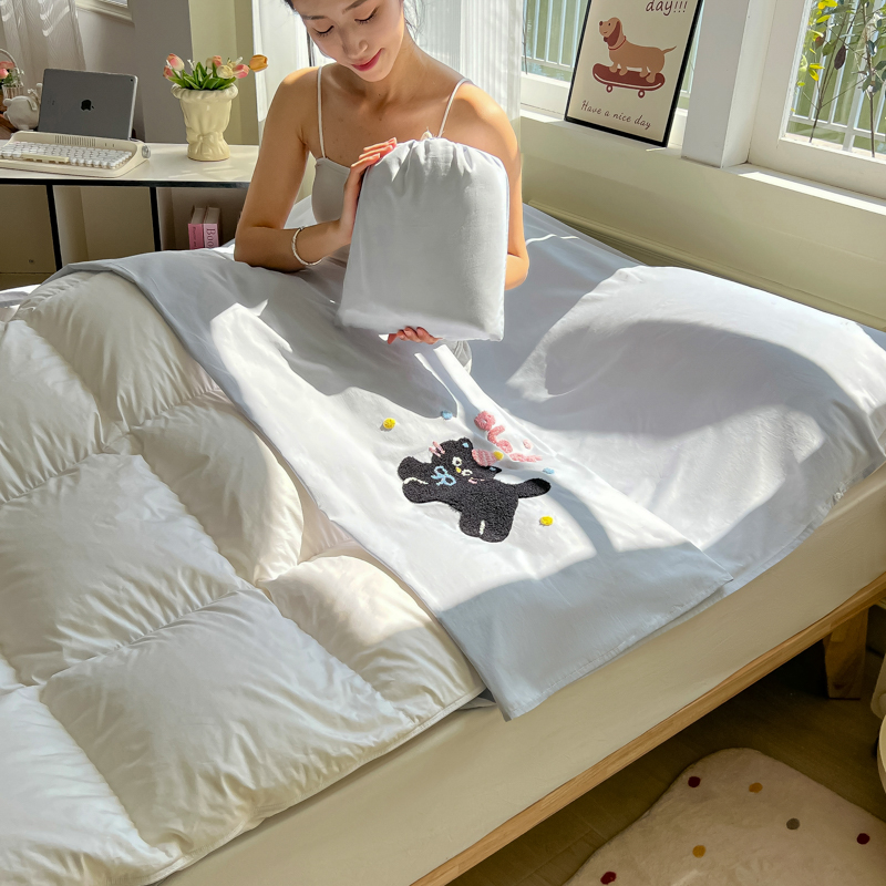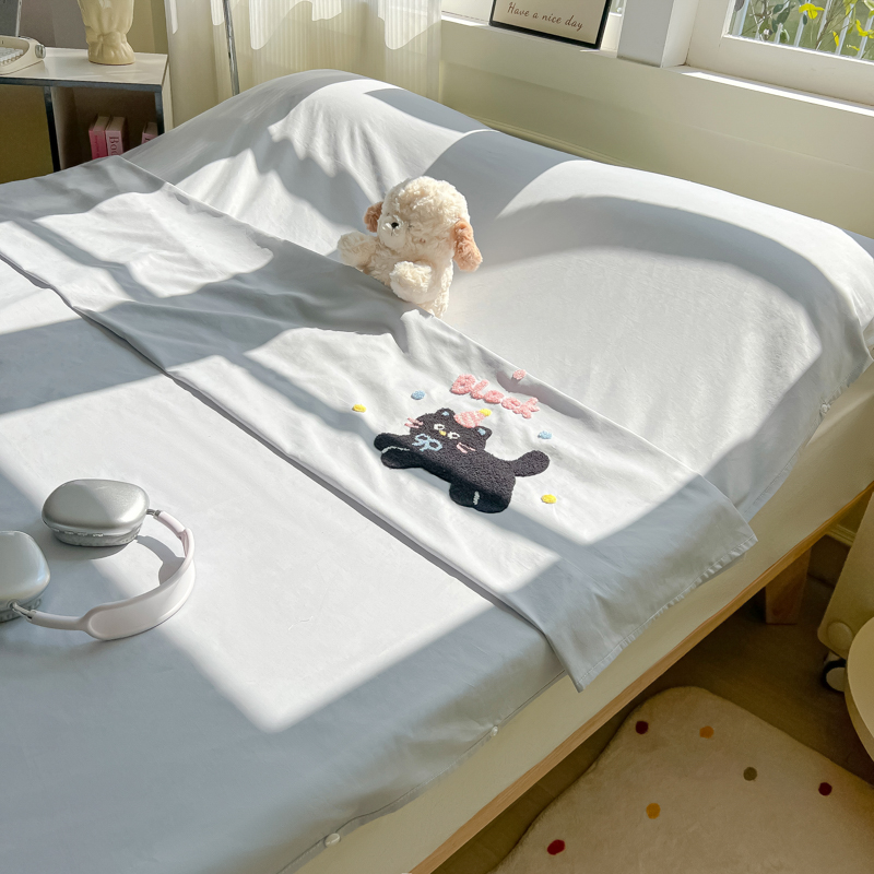 商品名称:柒星睡袋 2025新款款40支全棉纯色毛巾绣可拆分隔脏睡袋 黑猫 灰